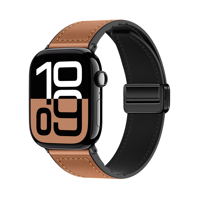防水仕様で日常使いに最適な、レザー×シリコンのハイブリッドApple Watchバンド。