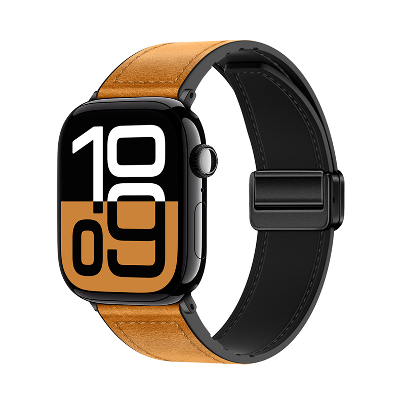 防水仕様で日常使いに最適な、レザー×シリコンのハイブリッドApple Watchバンド。
