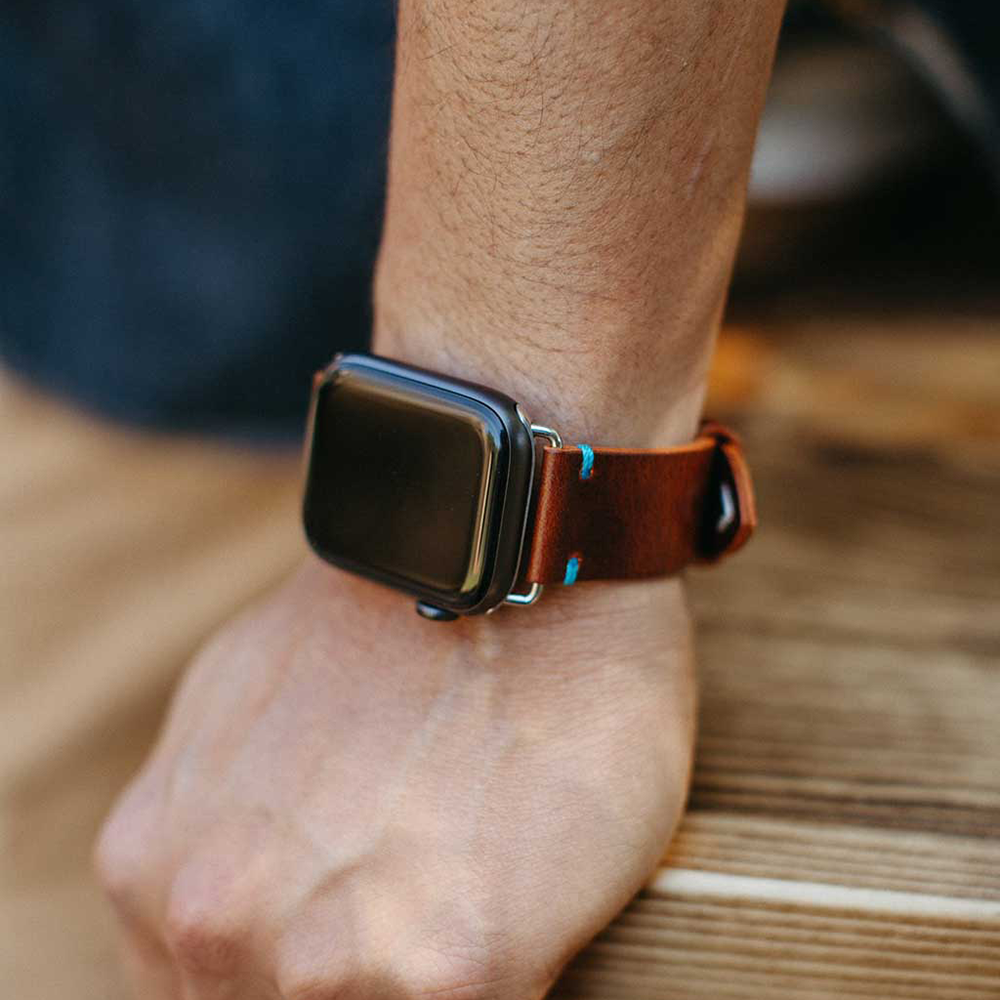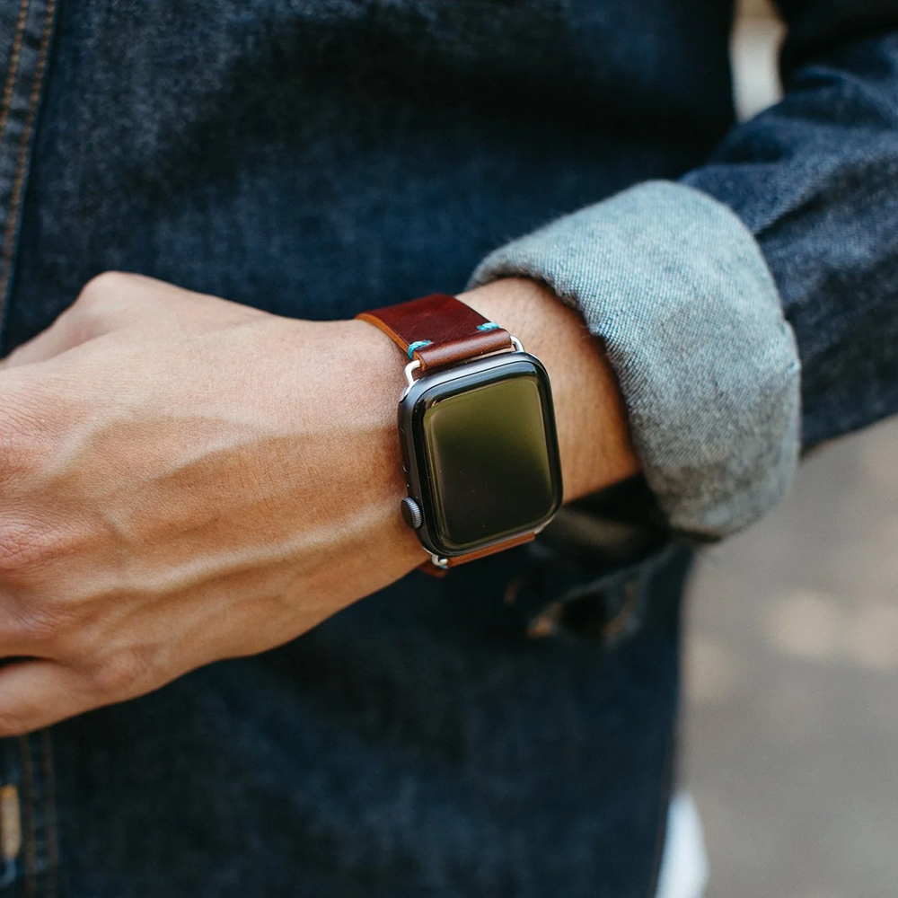 イタリアの名門タンナーによる上質なレザーを使用した、クラシックなダークブラウンのApple Watchバンド。