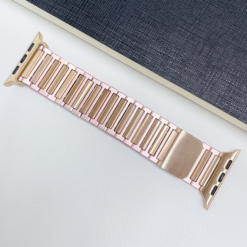 ステンレス素材を使用したバイカラーデザインのApple Watchバンド。