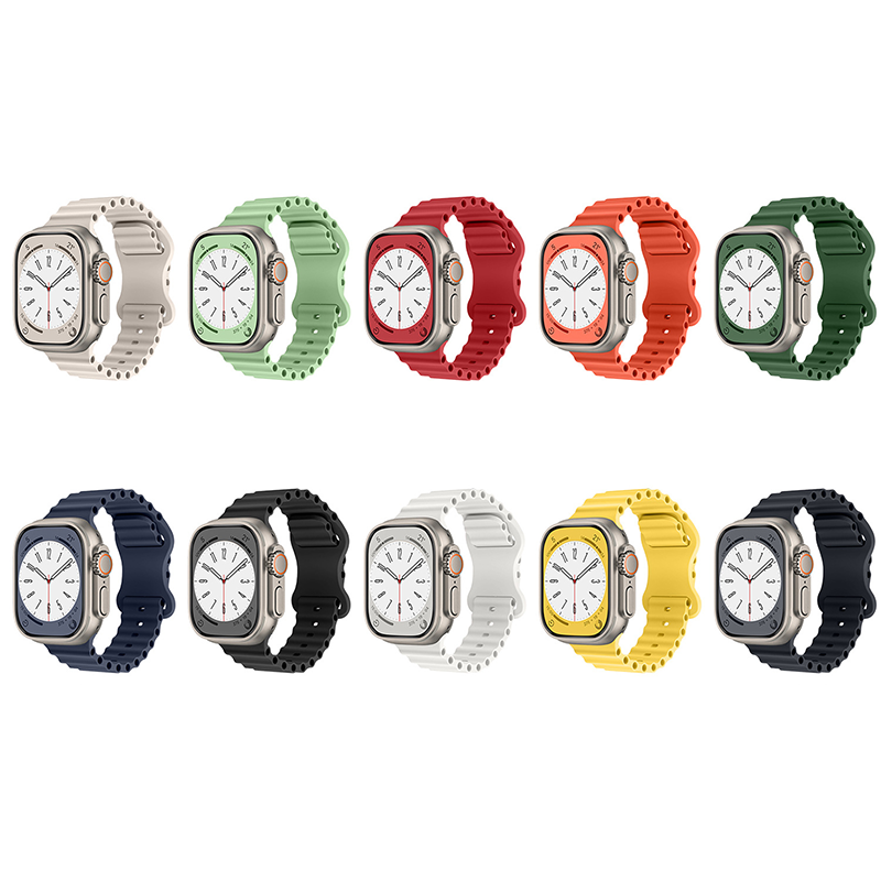 夏にぴったりな通気性と防水性を兼ね備えた、カラフルなApple Watchシリコンバンドです。