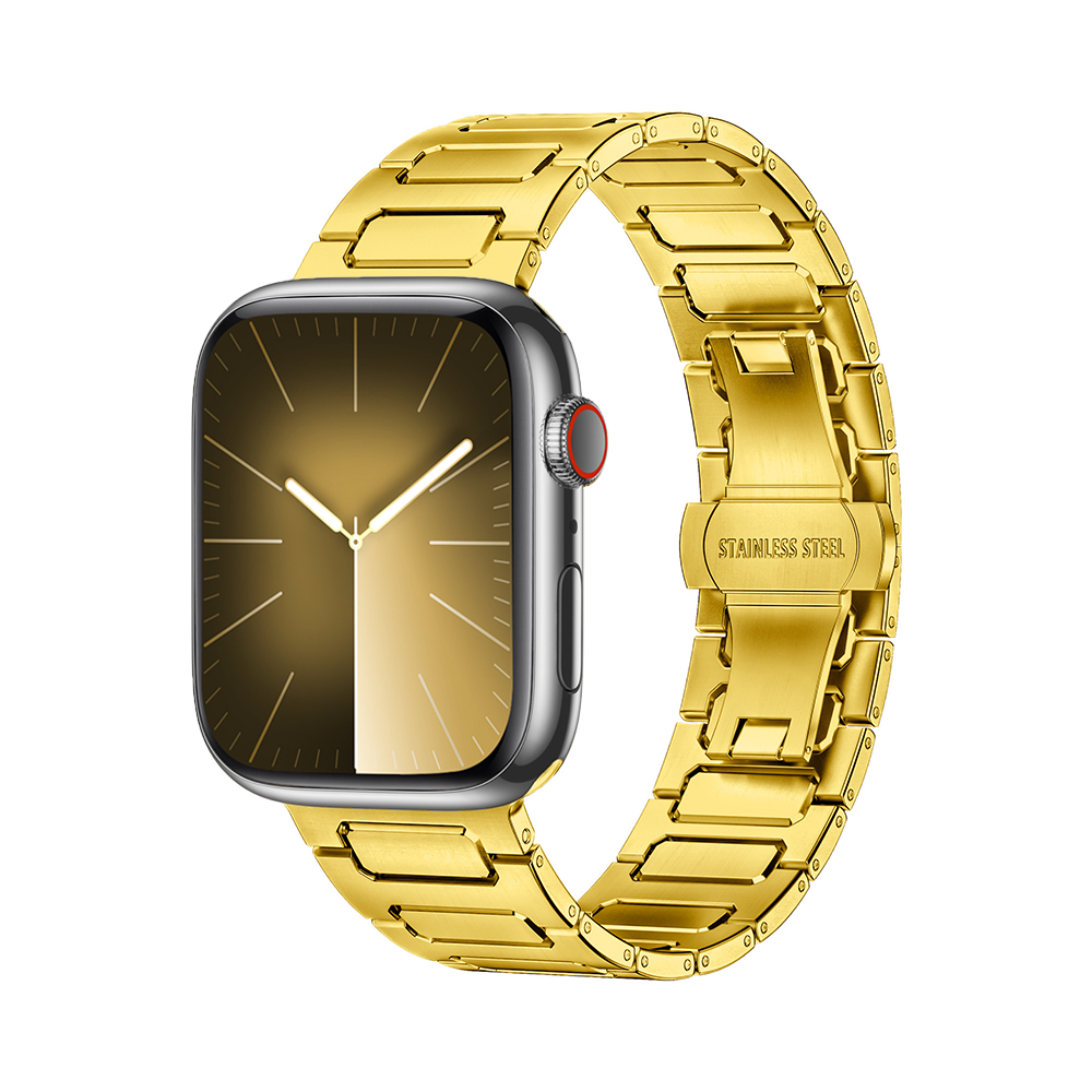 精巧に組み上げられたスクエア型のリンクが、手元に知性と重厚感を与えるステンレス製Apple Watchバンド。