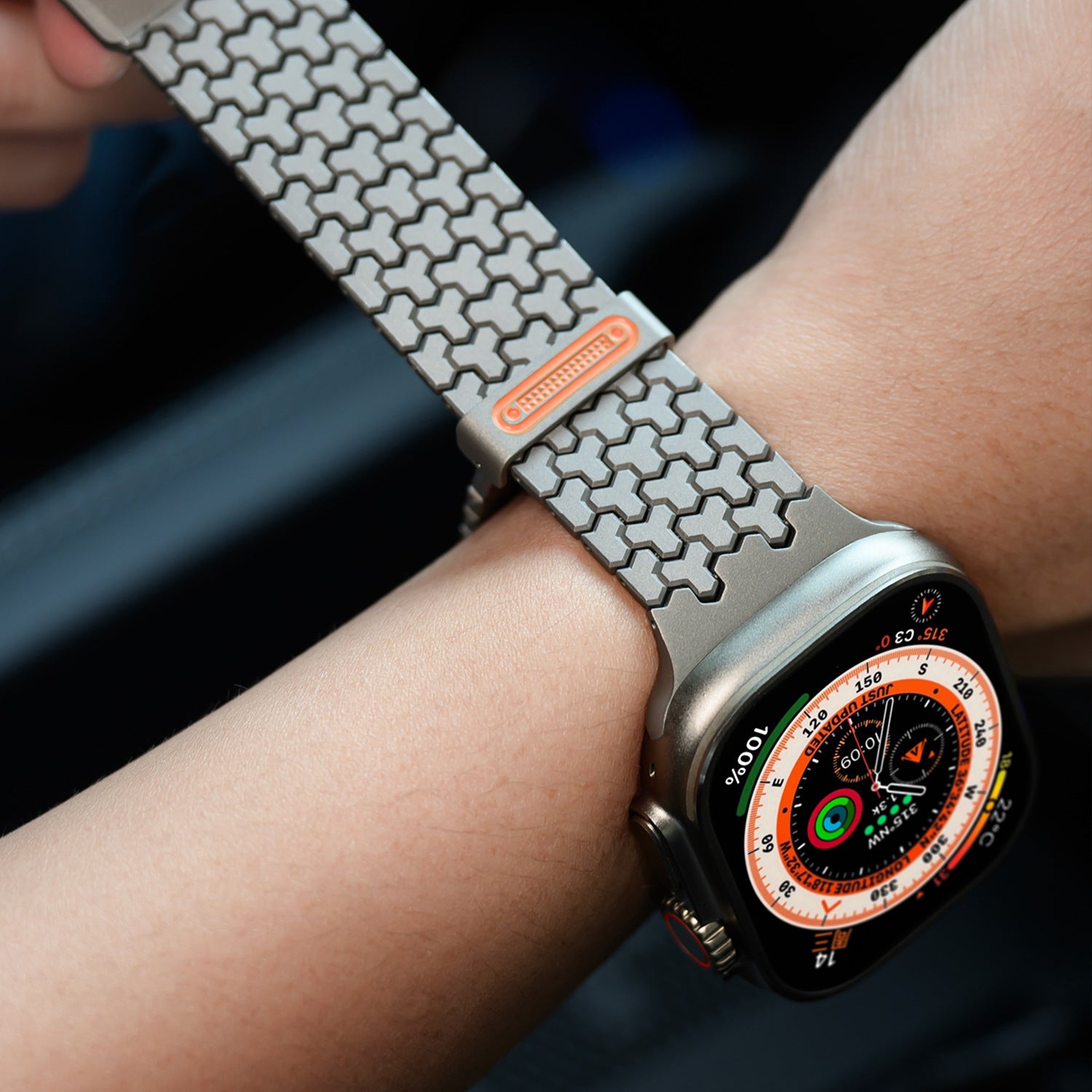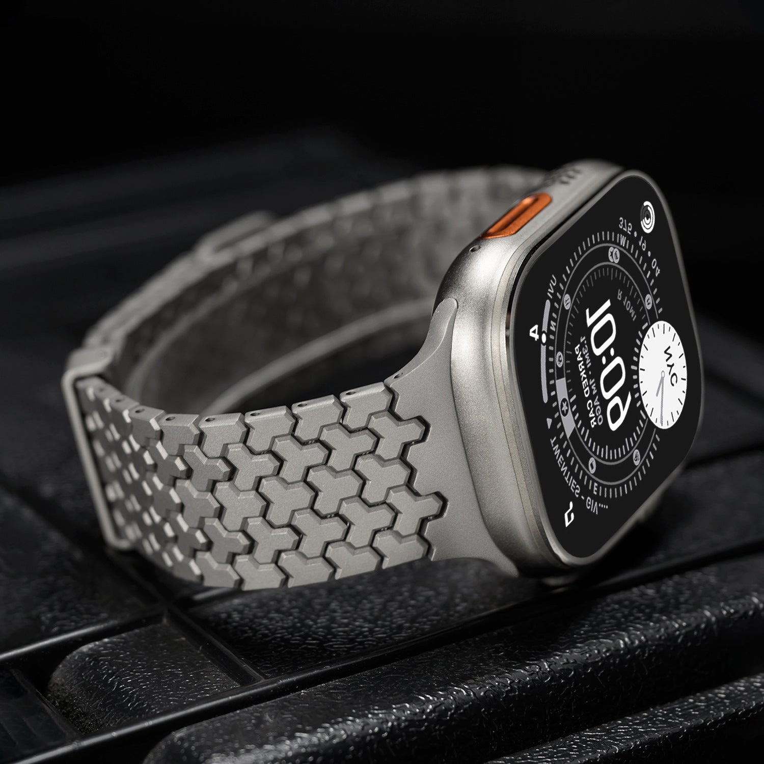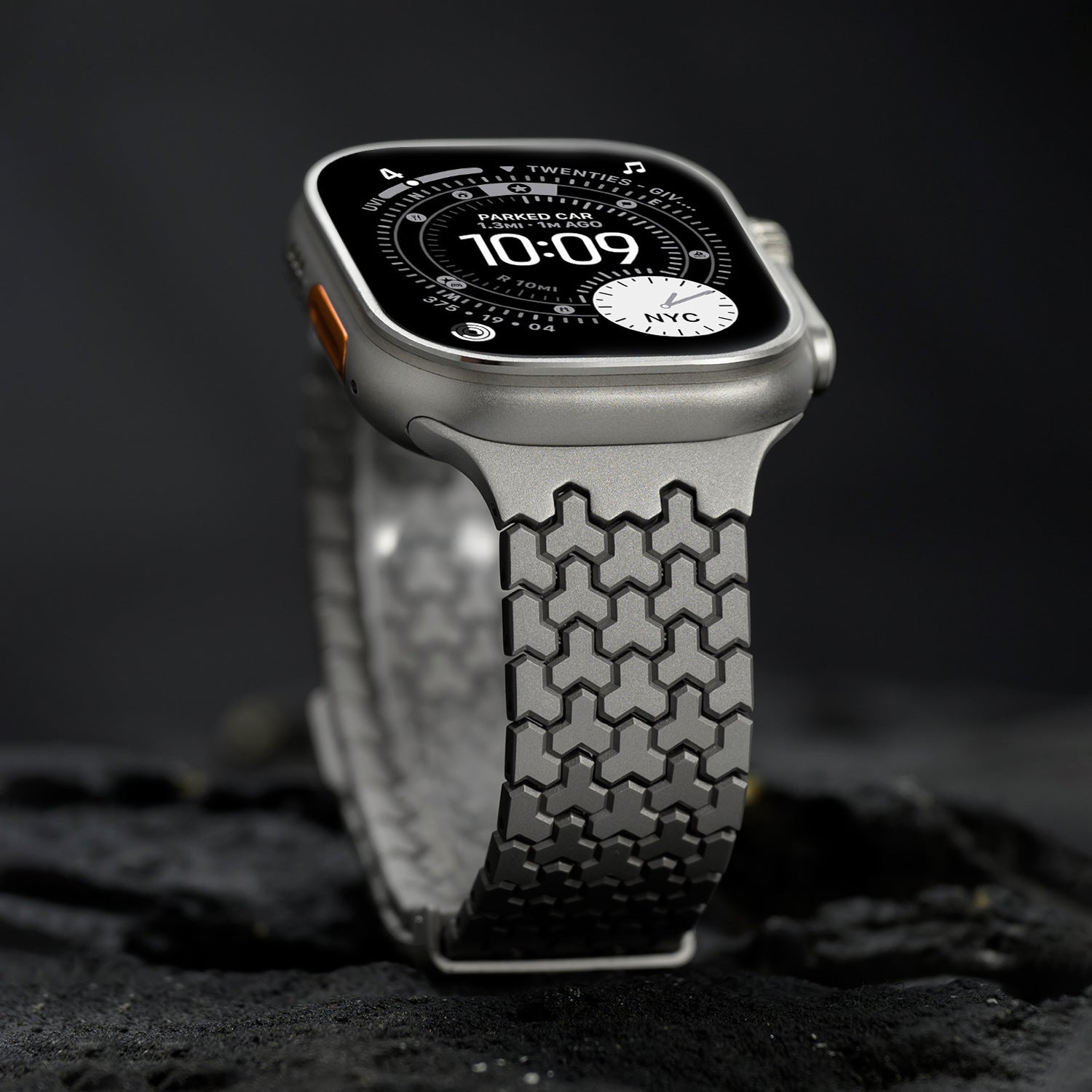 独特な幾何学模様が際立つ、最先端デザインのApple Watchバンド。