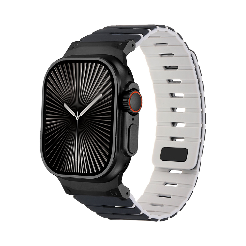 シリコン素材を採用したバイカラーデザインのApple Watchバンド。