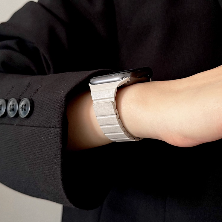 しなやかなマイクロファイバーレザーを採用したスリムデザインのApple Watchバンド。