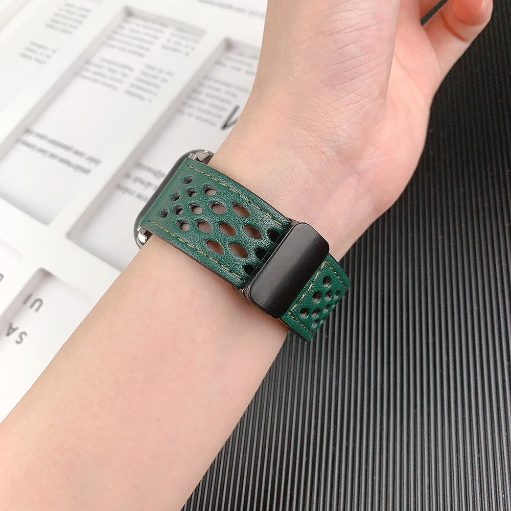 PUレザーに通気性の高いホールデザインを施し、汗や蒸れを軽減して快適な着け心地を実現したApple Watchバンドです。