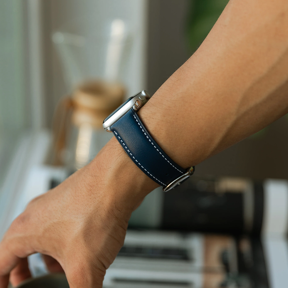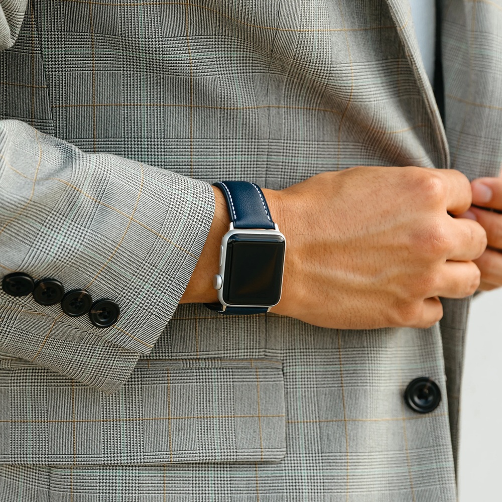 深みのあるミッドナイトブルーが手元に洗練された雰囲気を演出します。