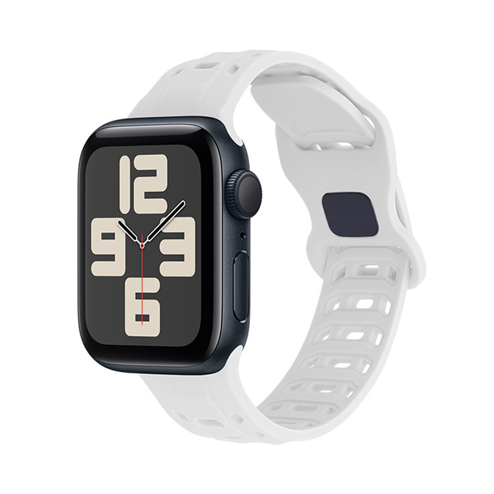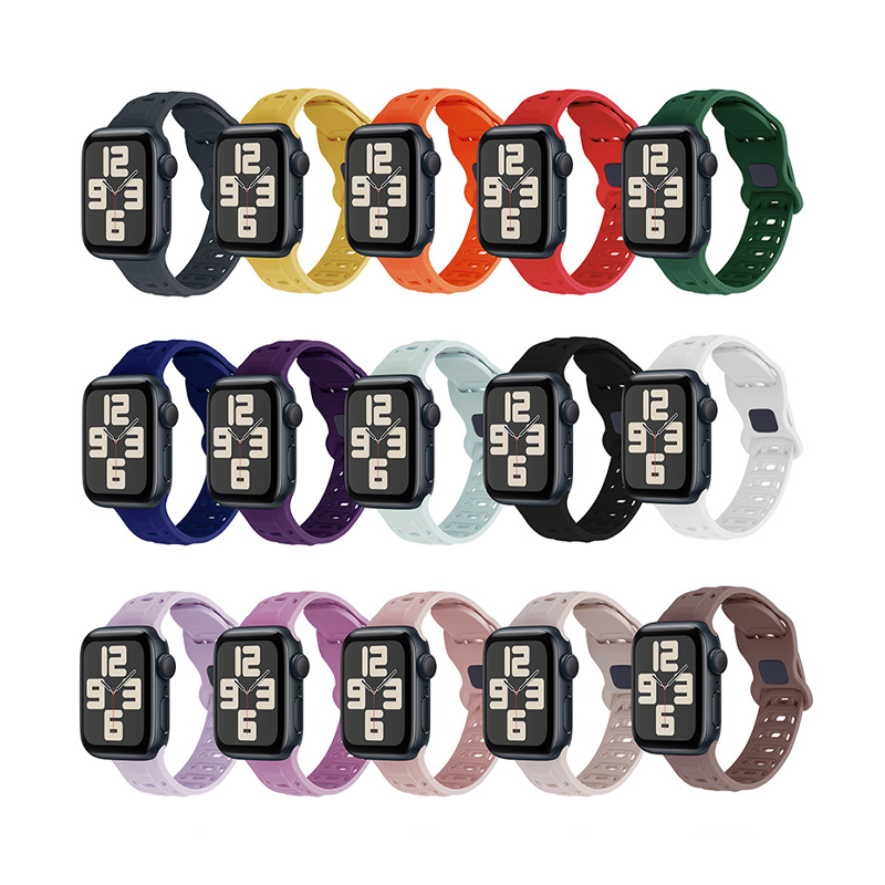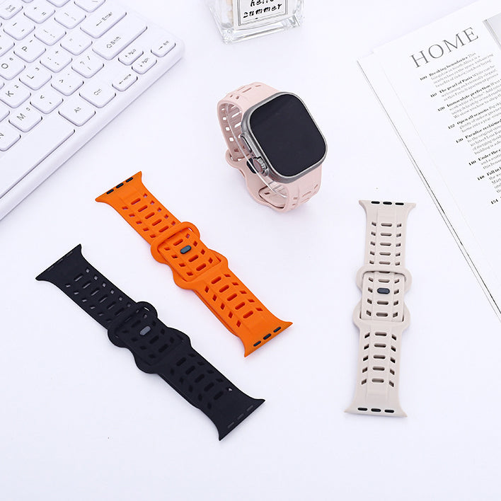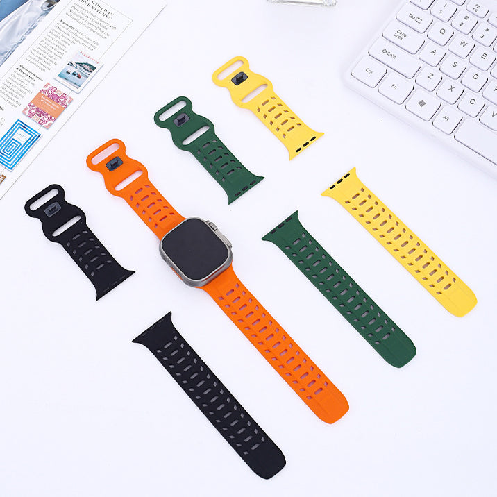 快適性とデザイン性を兼ね備えた、通気ホール付きのシリコンバンドです。