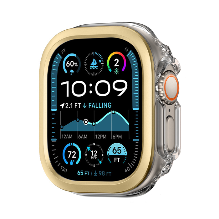 PCフレームとプラスチックを組み合わせたハイブリッド構造が、Apple Watchをしっかりガードするクリアケースです。