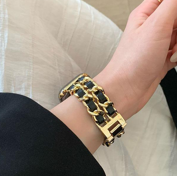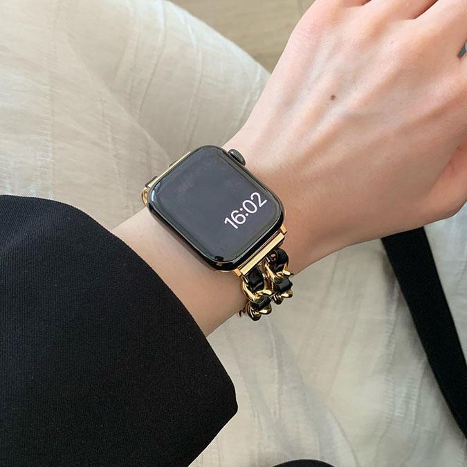 チェーンとレザーの組み合わせがおしゃれでかわいいアップルウォッチバンドです♪