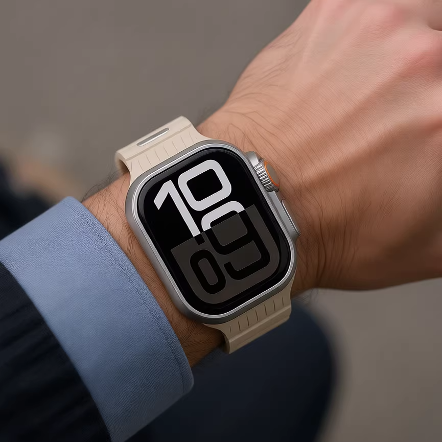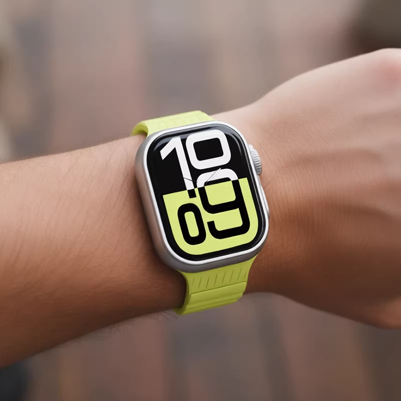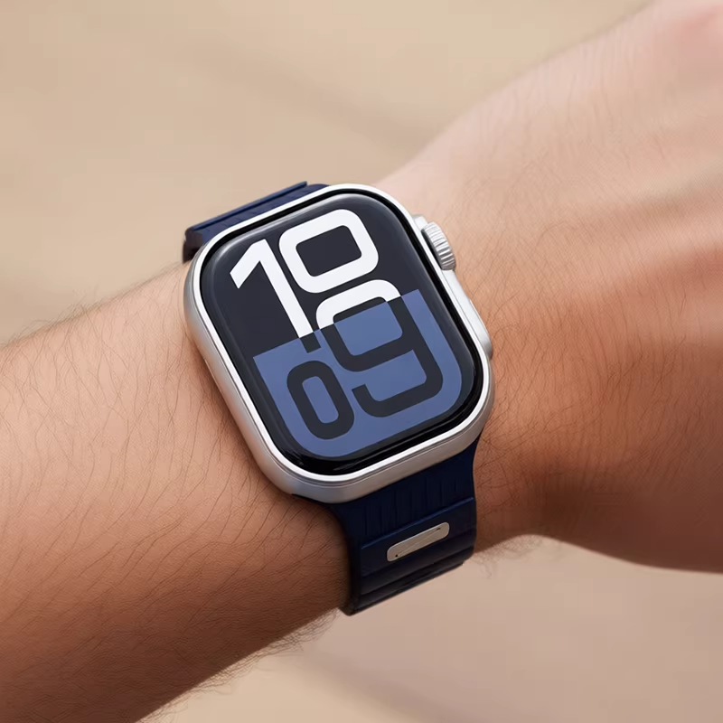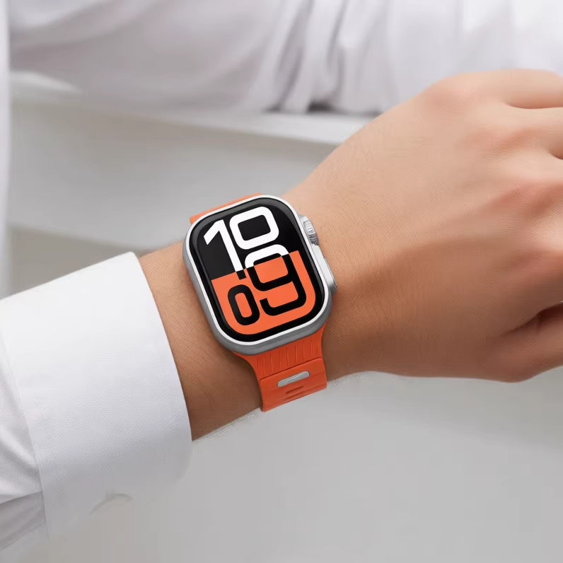 やわらかなシリコン素材を採用した、シンプルデザインのApple Watchバンド。