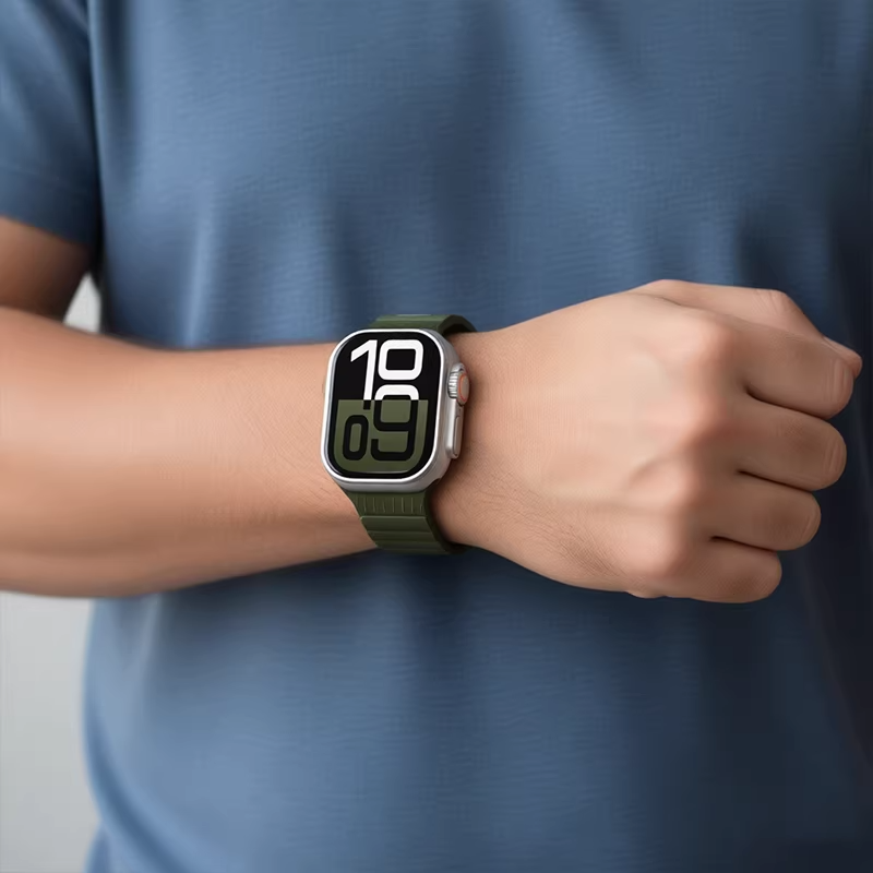 12色の豊富なカラーバリエーションは、コーディネートや気分に合わせた付け替えが楽しく、Apple Watch本体のデザインとも自然に調和。