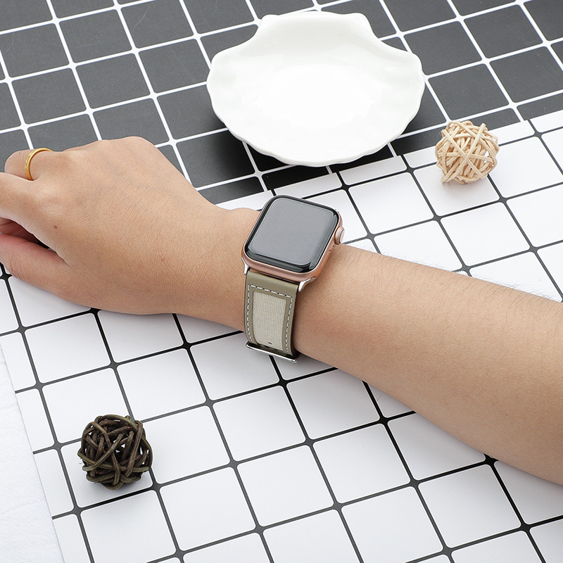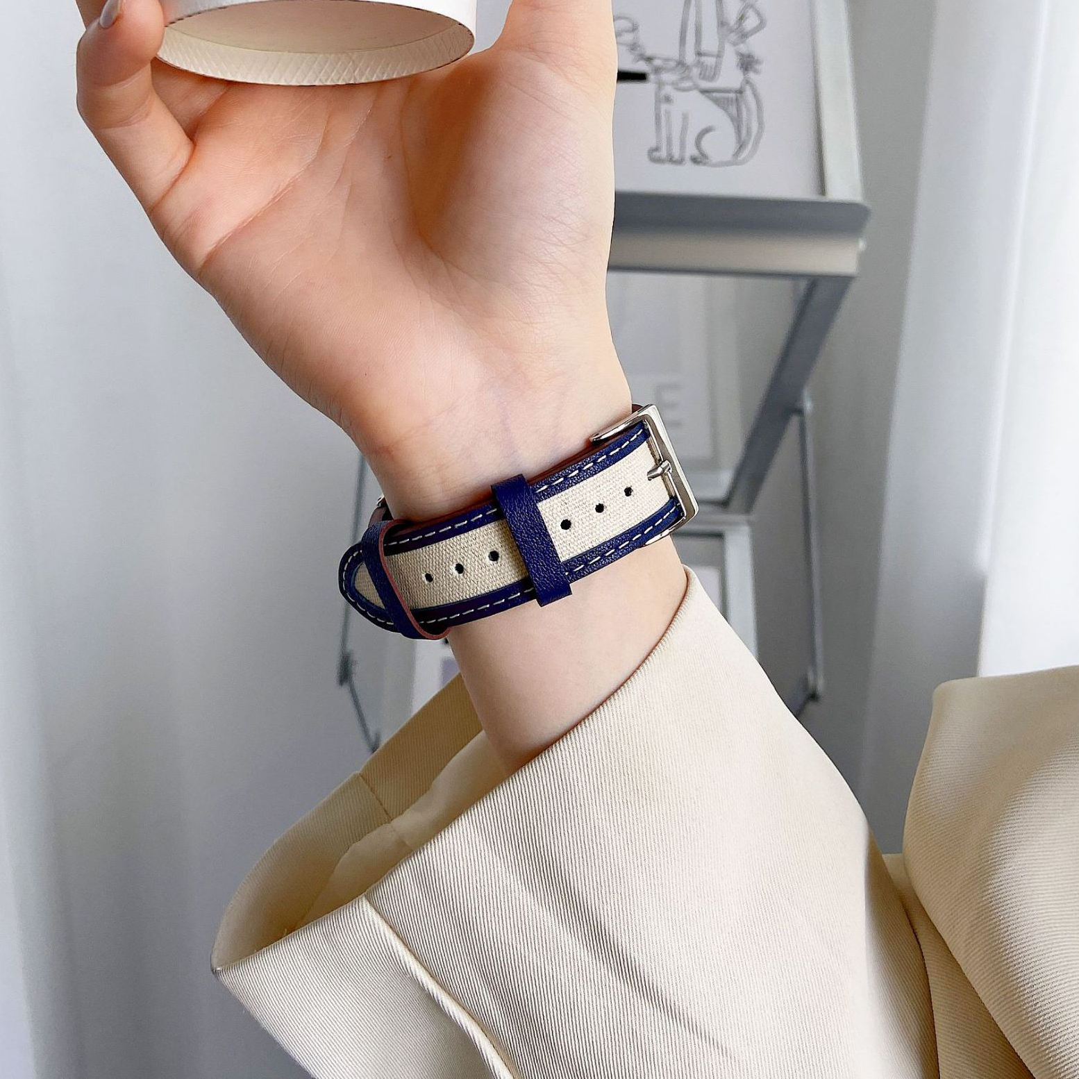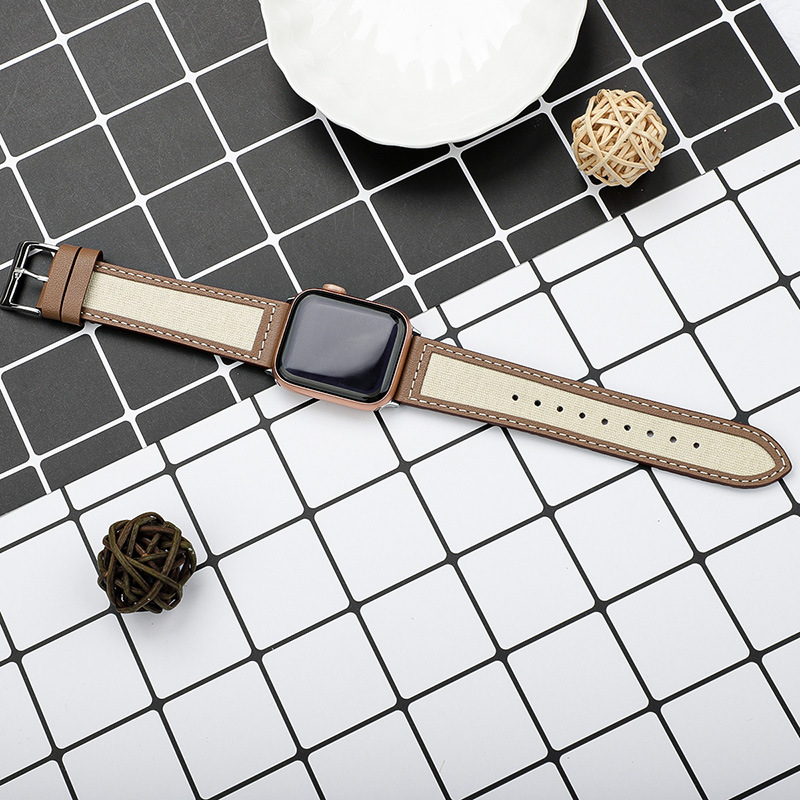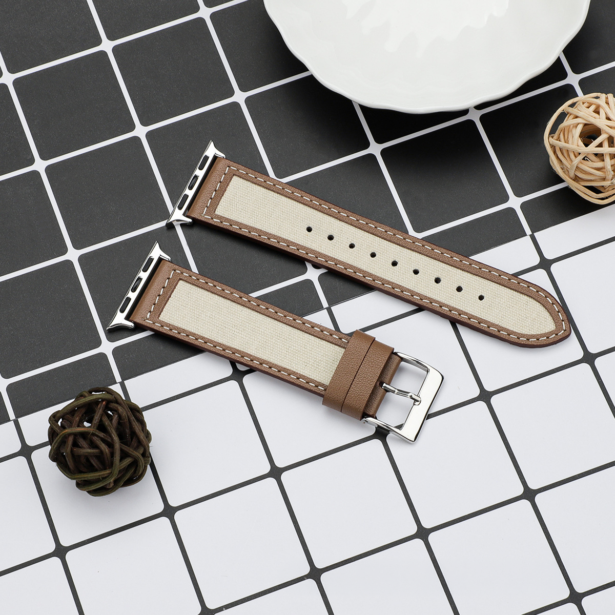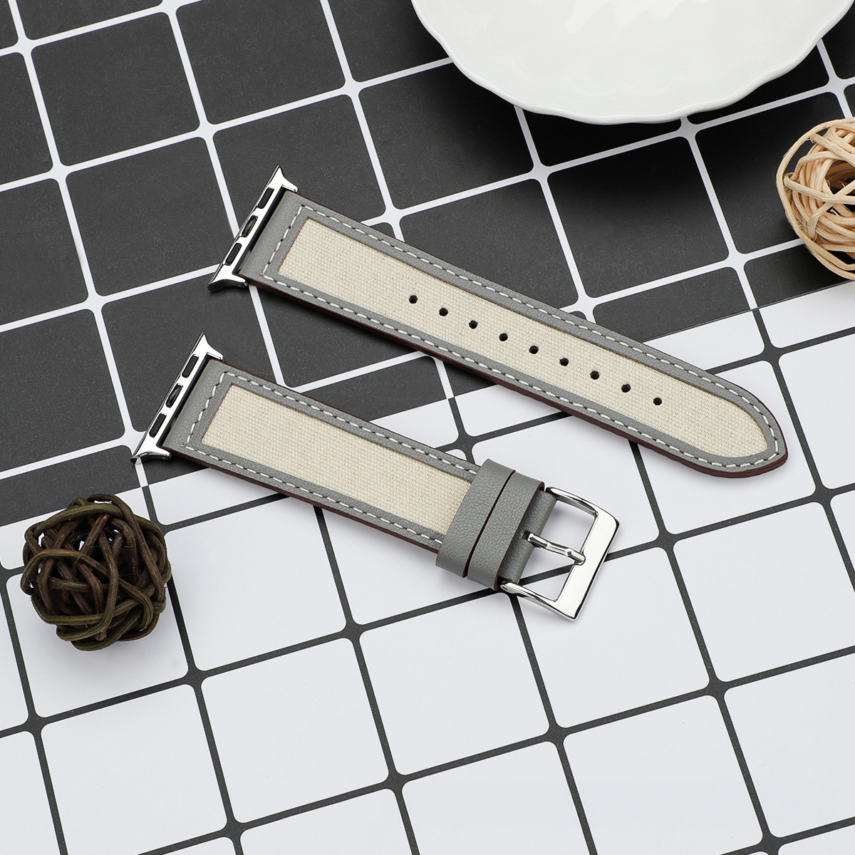 キャンバス素材とレザーを組み合わせた、ツートーンデザインのApple Watchバンド。