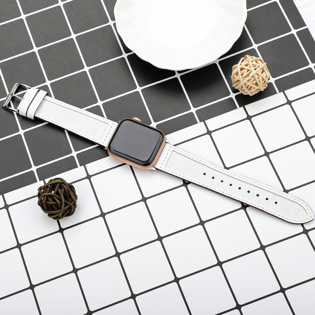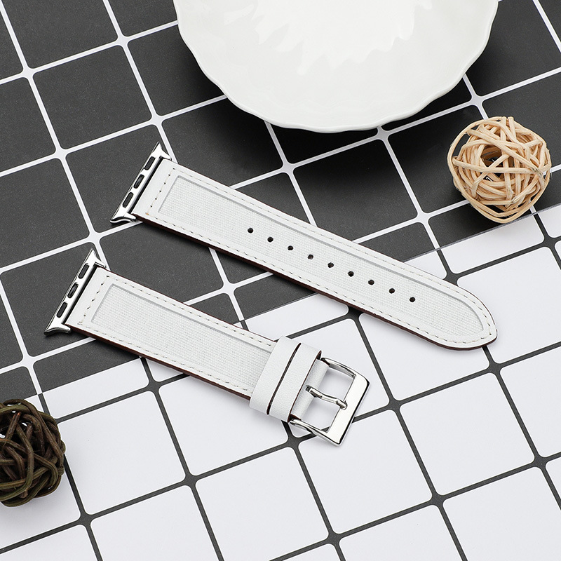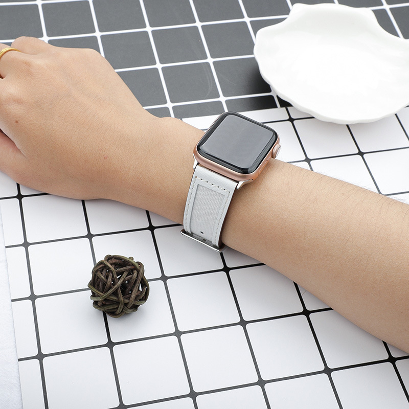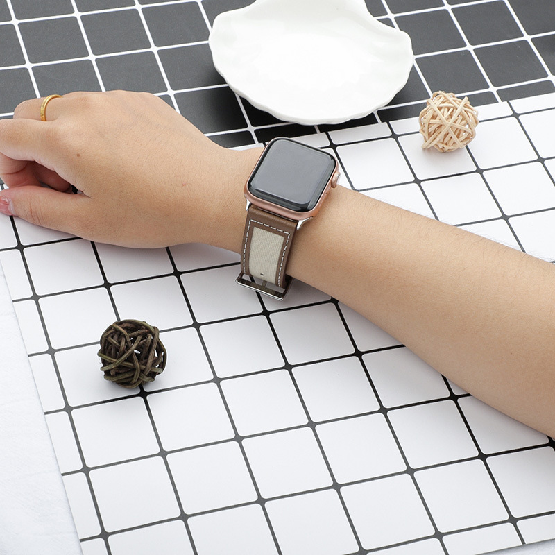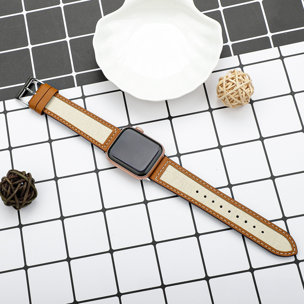 キャンバス素材とレザーを組み合わせた、ツートーンデザインのApple Watchバンド。