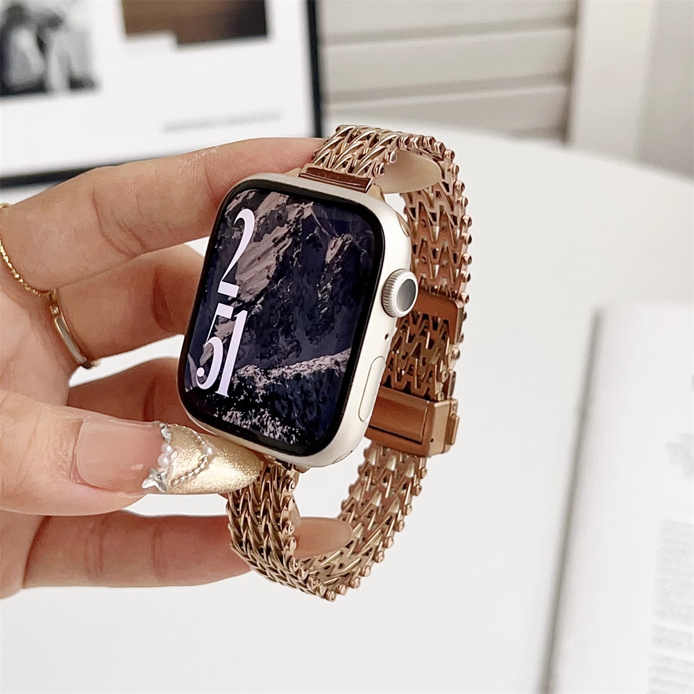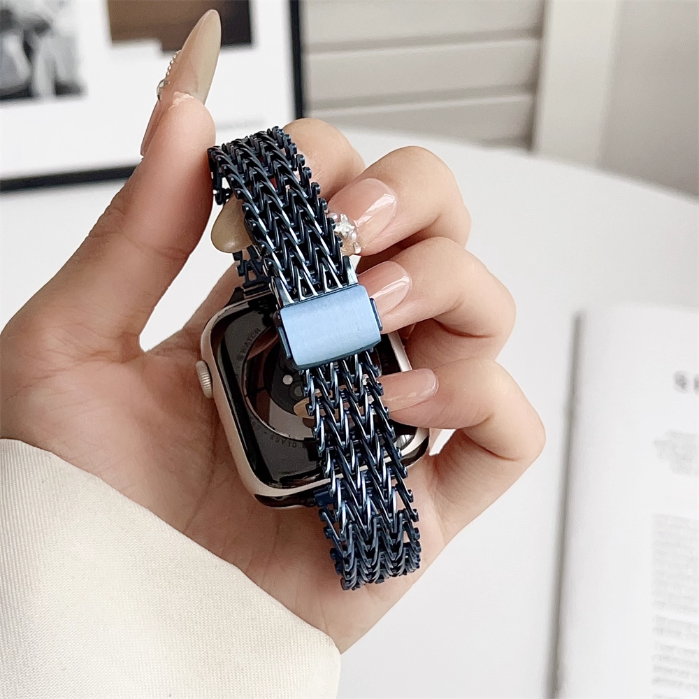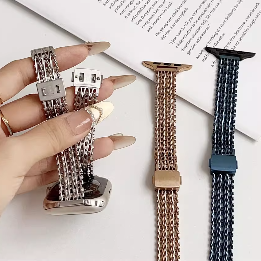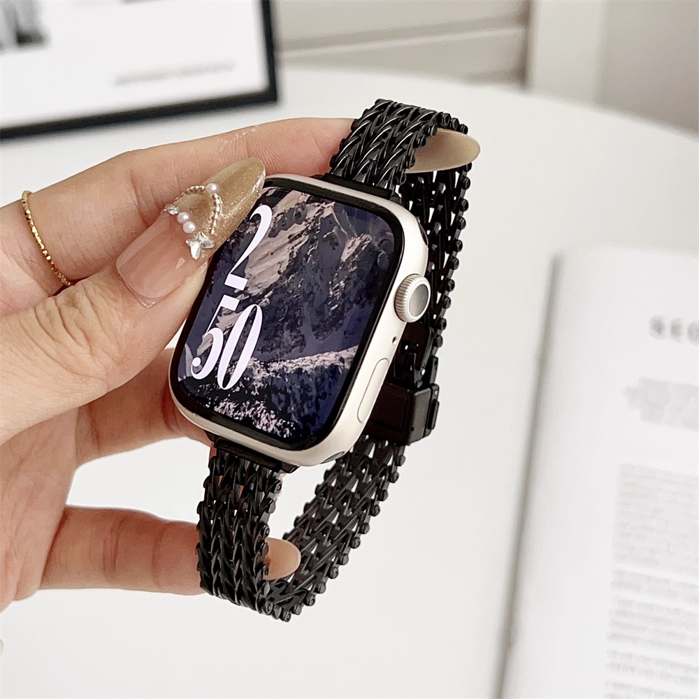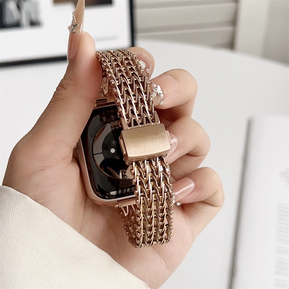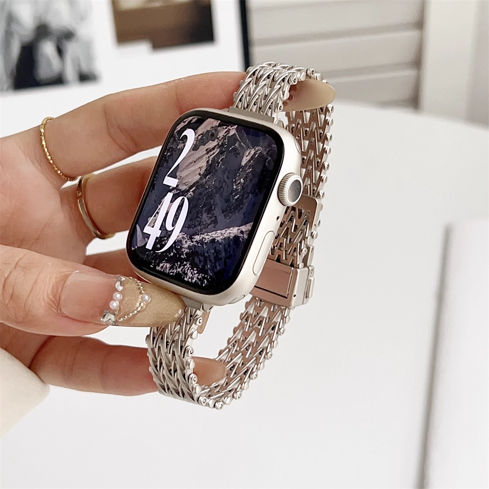V字に編み込まれた繊細なメッシュデザインが特徴のApple Watchバンド。