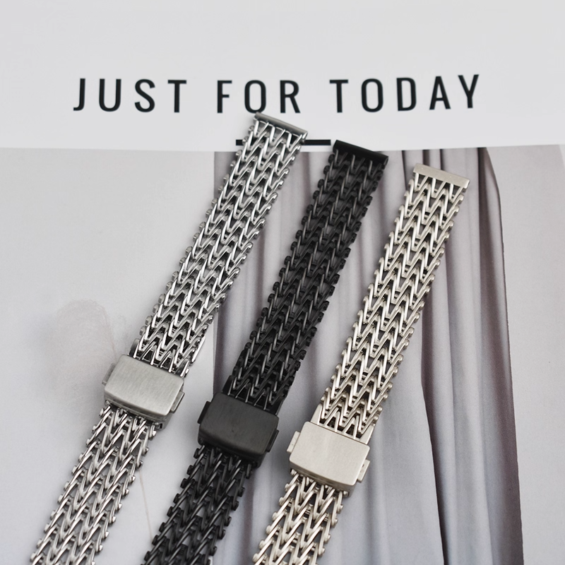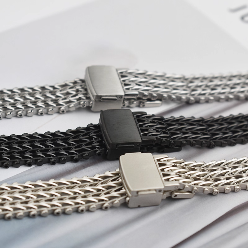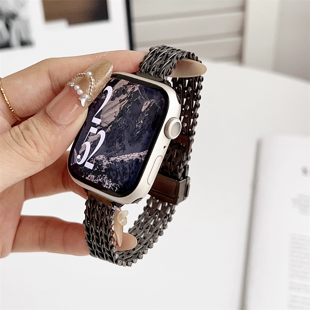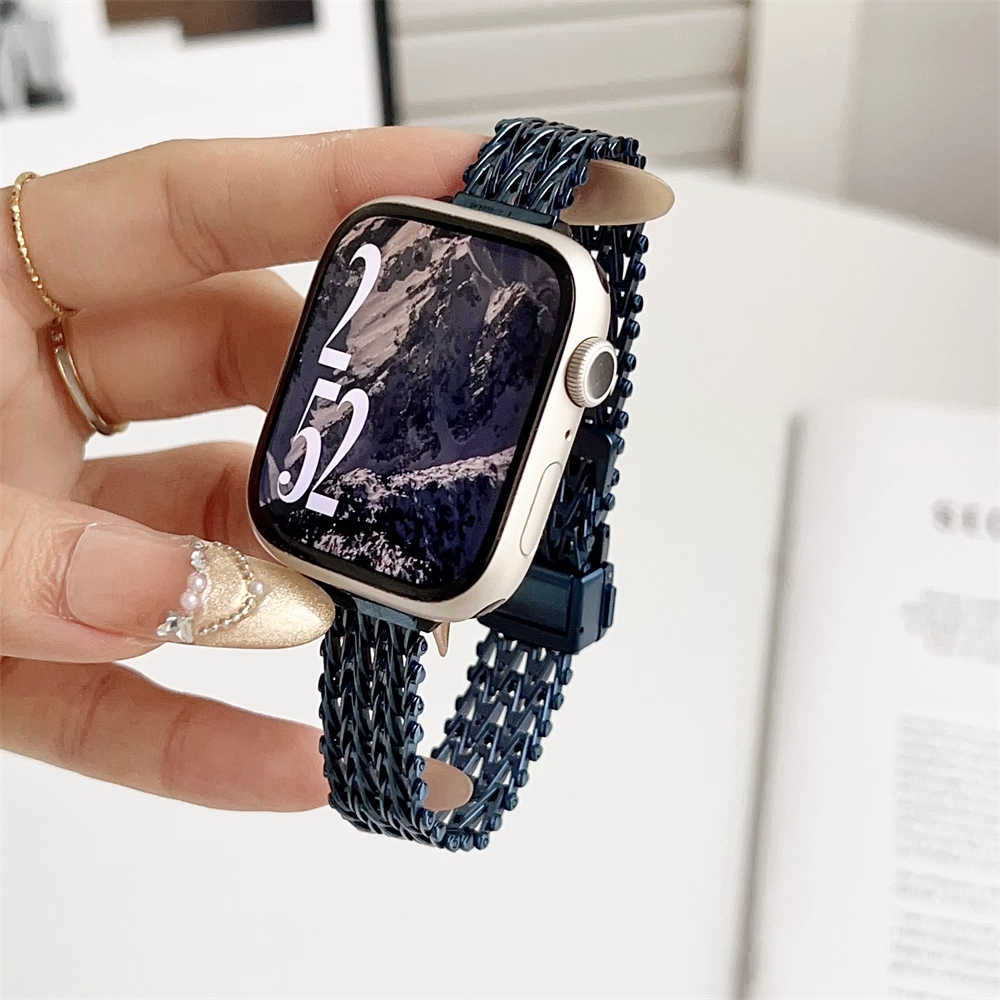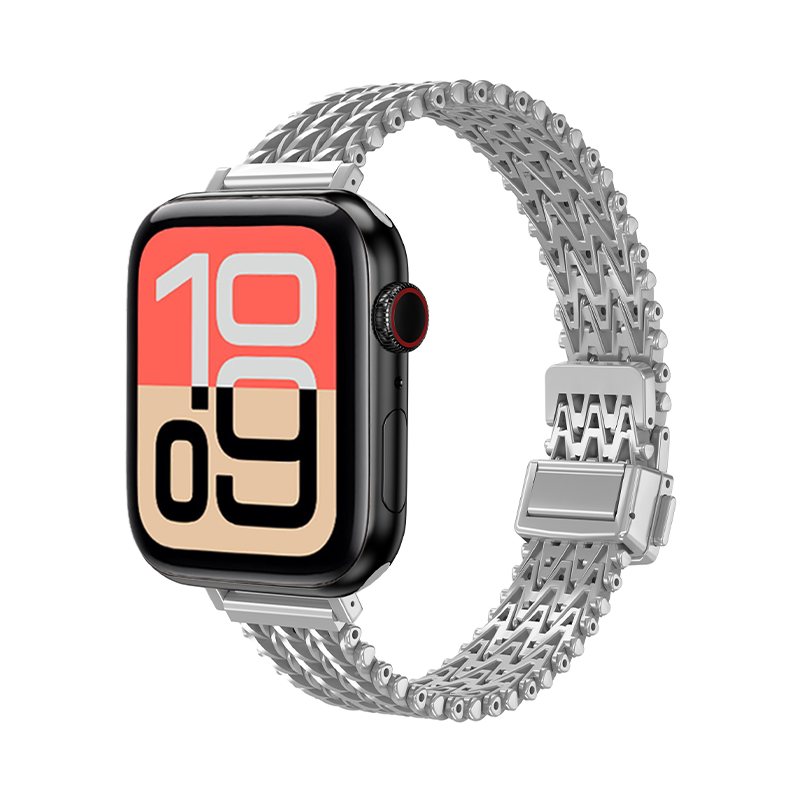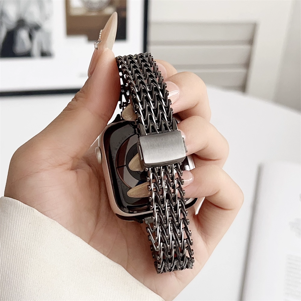 V字に編み込まれた繊細なメッシュデザインが特徴のApple Watchバンド。