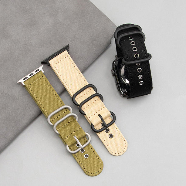 【デニム風素材】トリプルリングキャンバスバンド【アップルウォッチ】