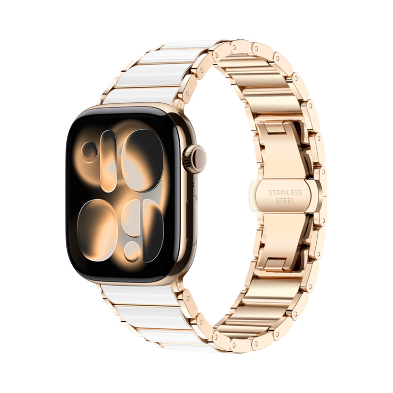ステンレスの重厚感に、セラミック調のなめらかな艶を組み合わせた、上品でエレガントなApple Watchバンド。