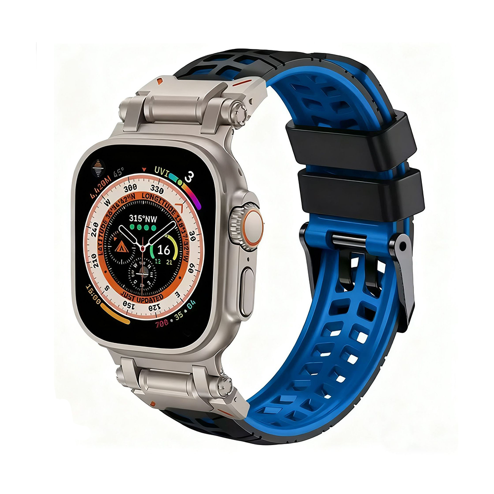 ステンレス製のコネクトパーツと柔軟なシリコンバンドを組み合わせた、タフで快適なApple Watchバンド。