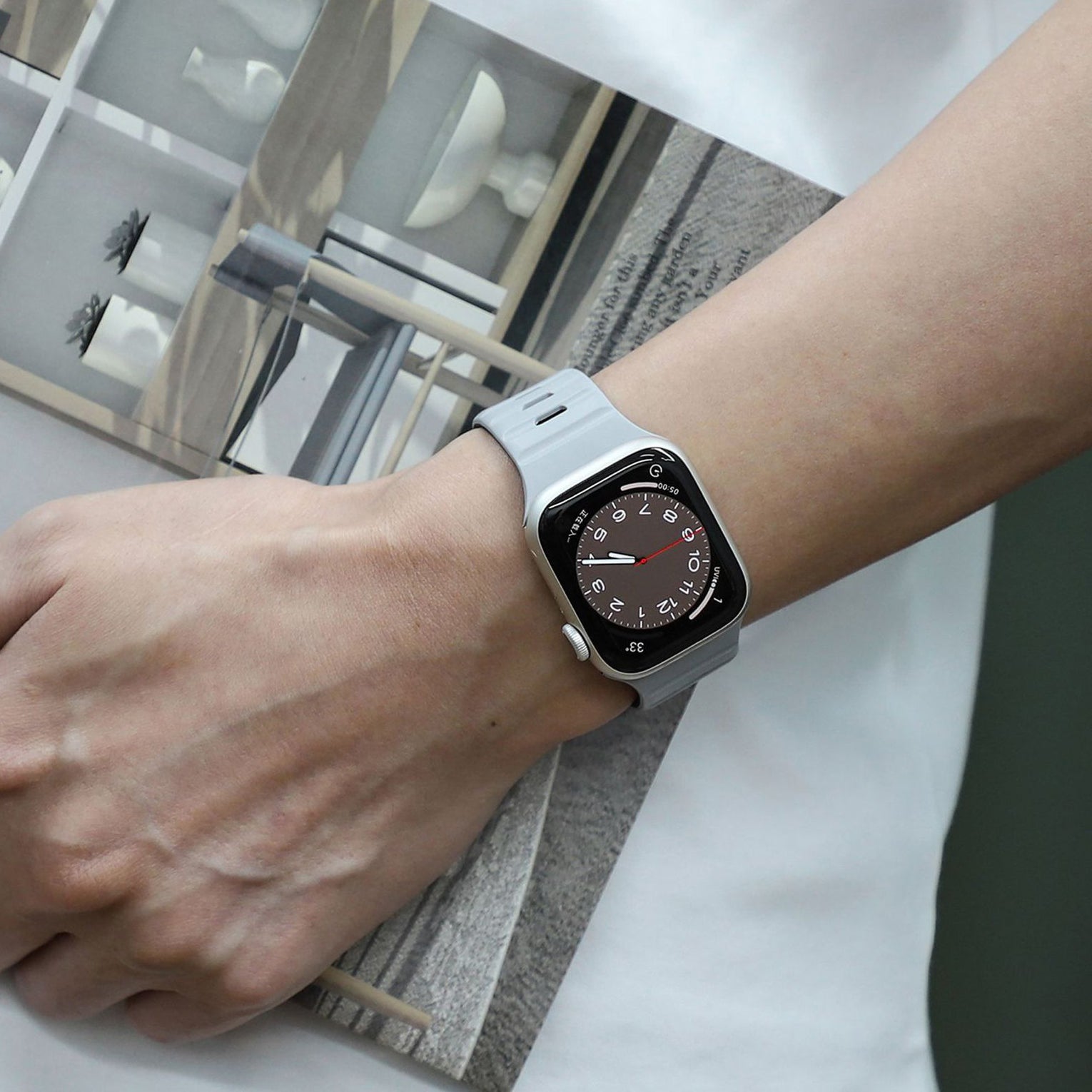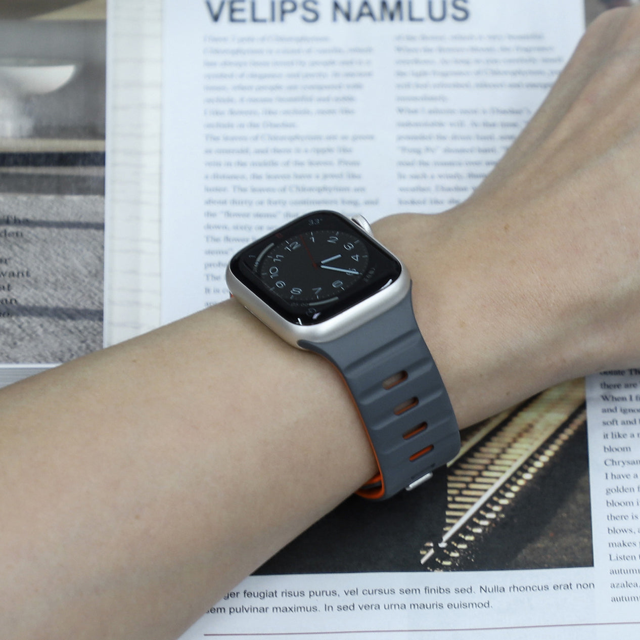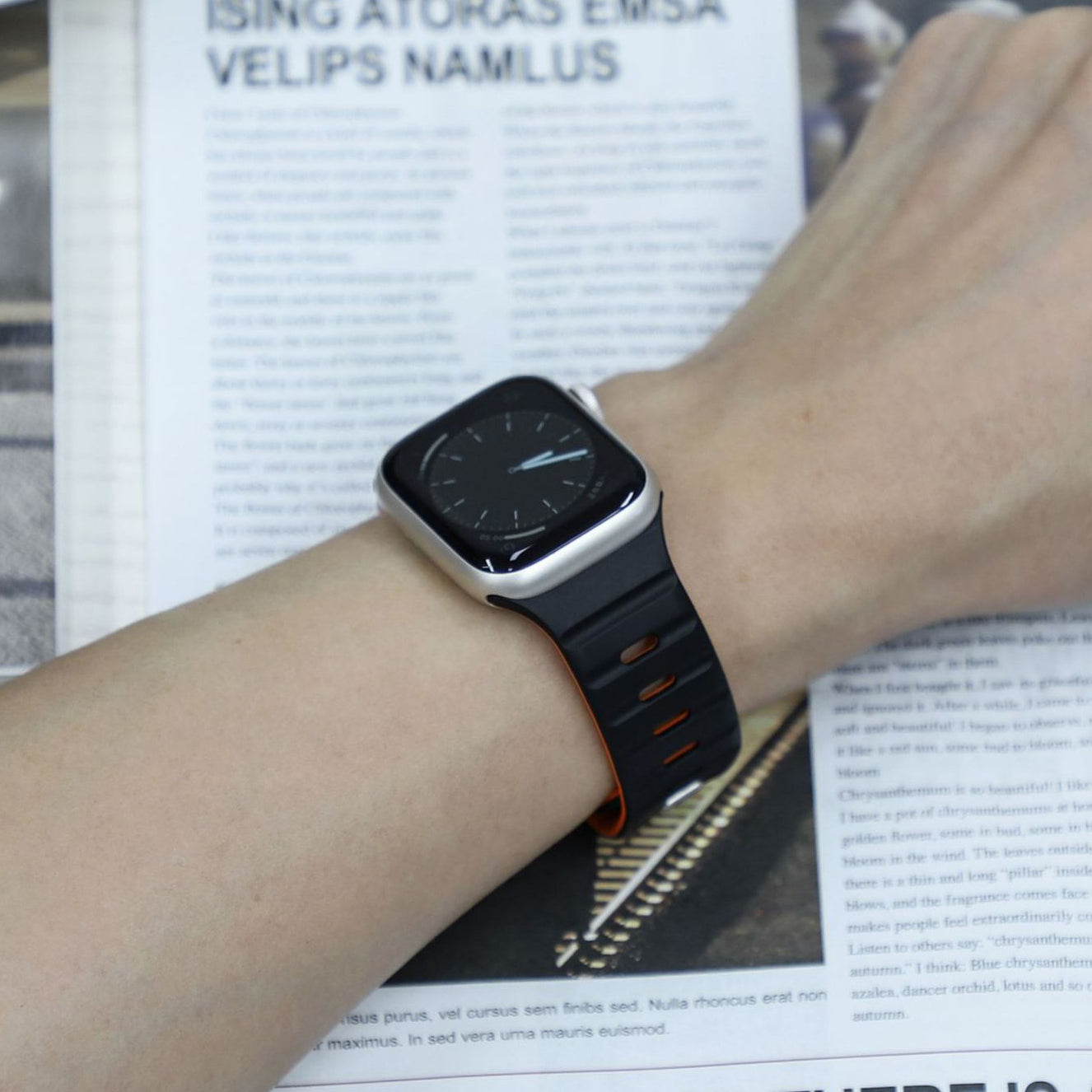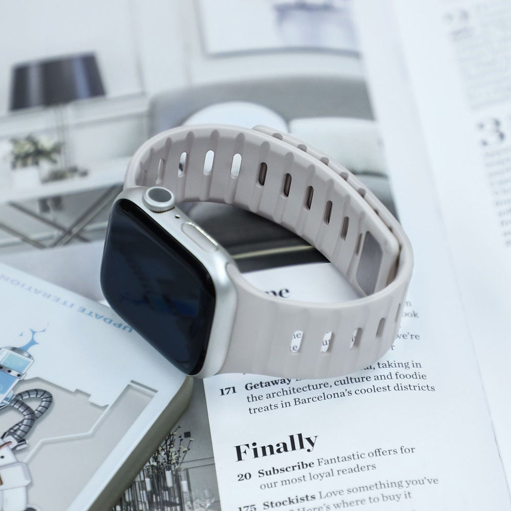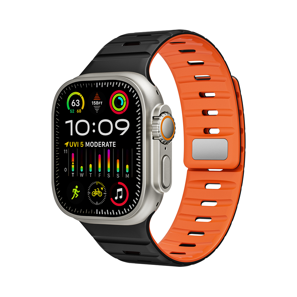 滑らかなシリコン素材に、内側と外側で異なるカラーを組み合わせたバイカラーデザインが特徴のApple Watchバンド。