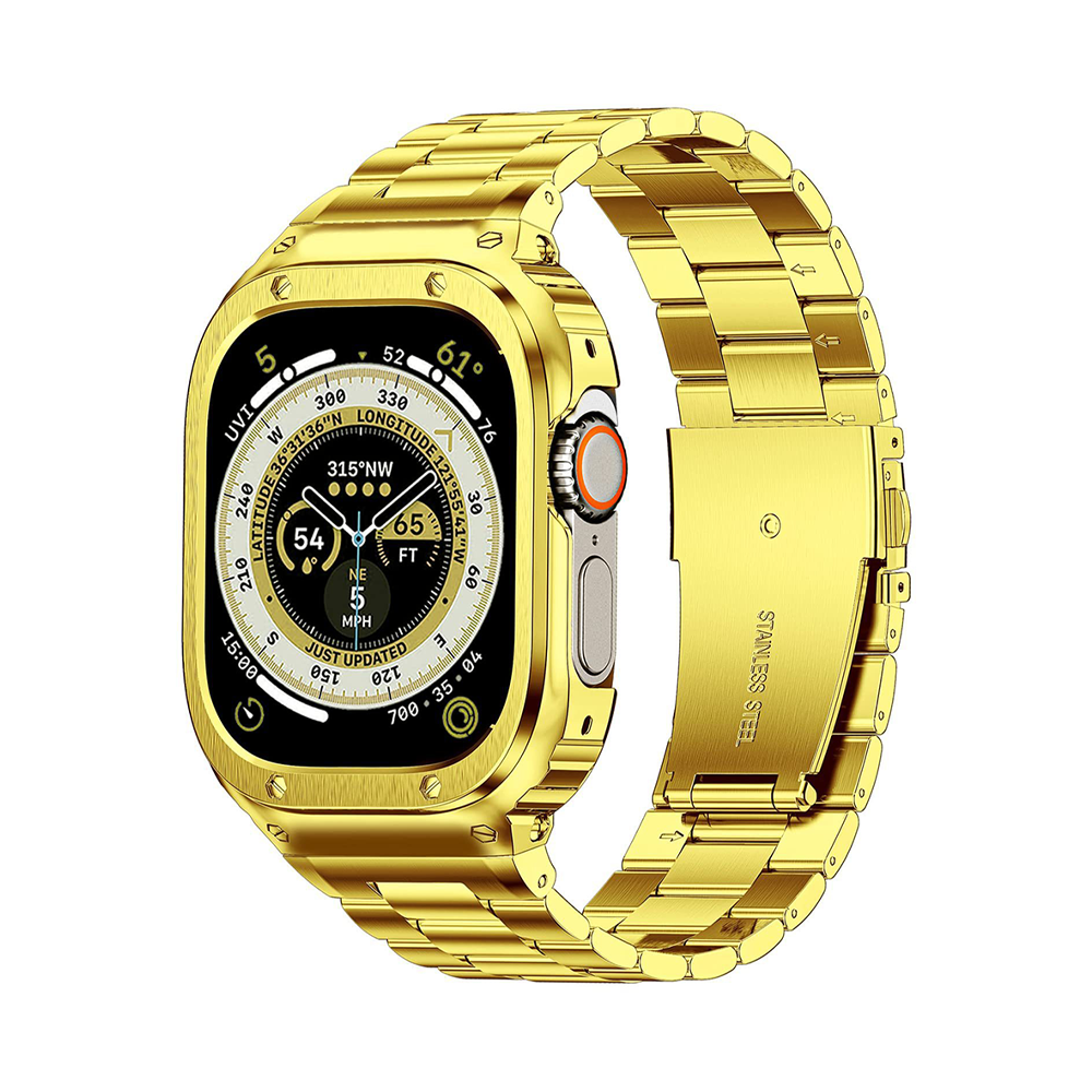ケースとバンドを一体化させたフルメタル構造により、Apple Watchの存在感を一段引き上げるケース一体型バンド。