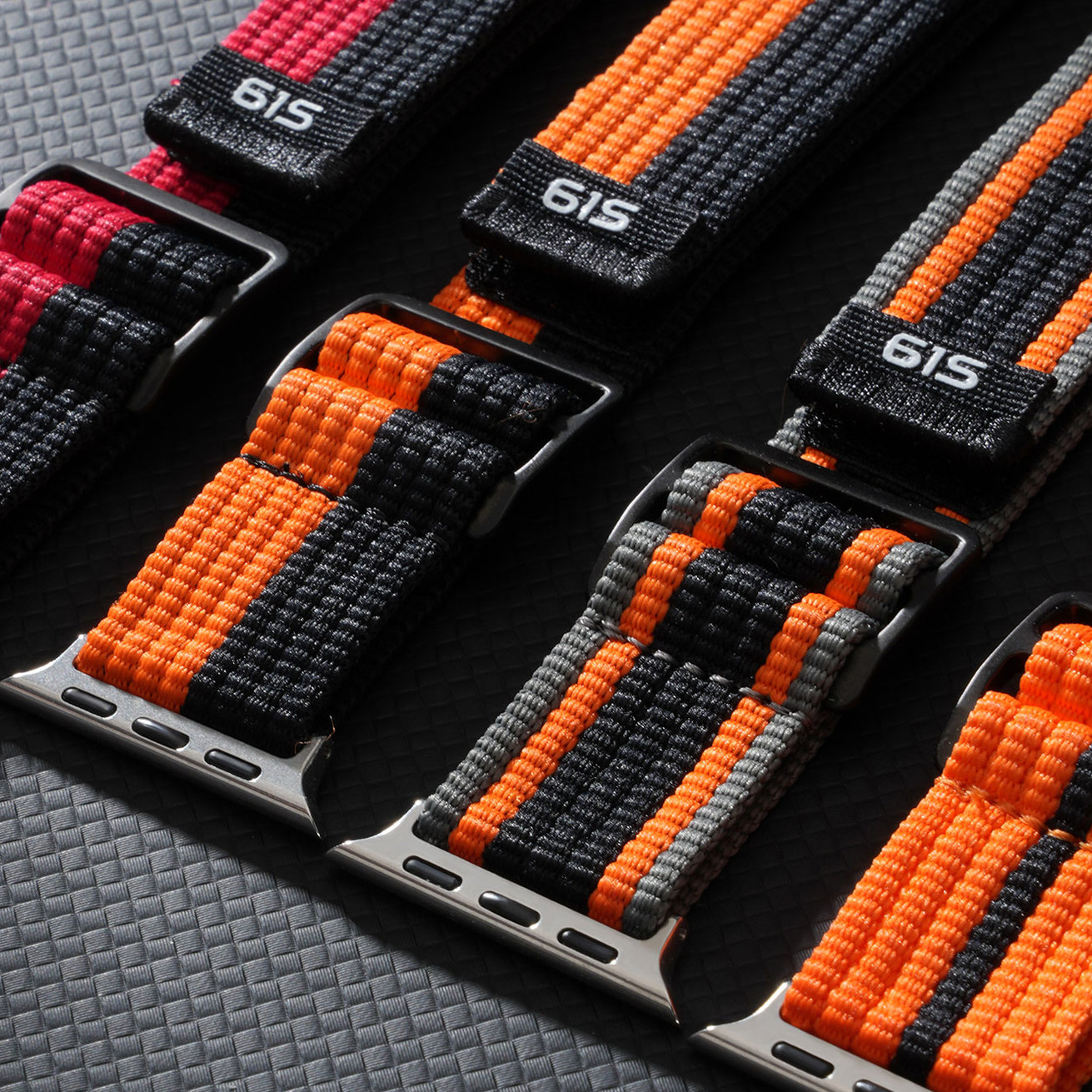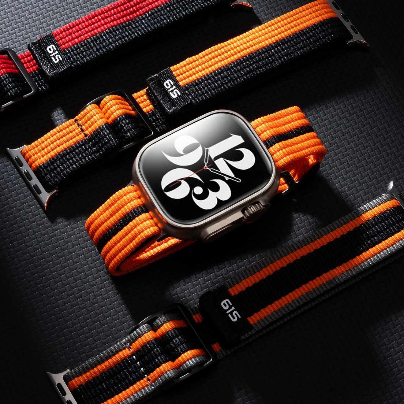 スポーティーなラインデザインが目を引く、ナイロン素材のApple Watchバンド。