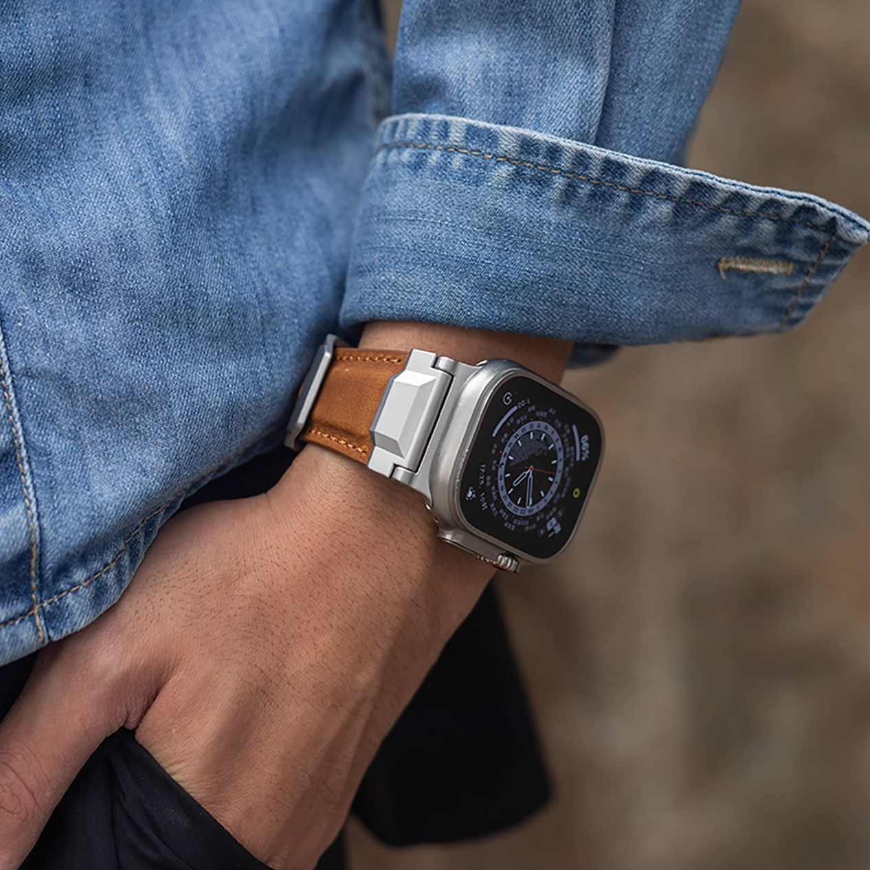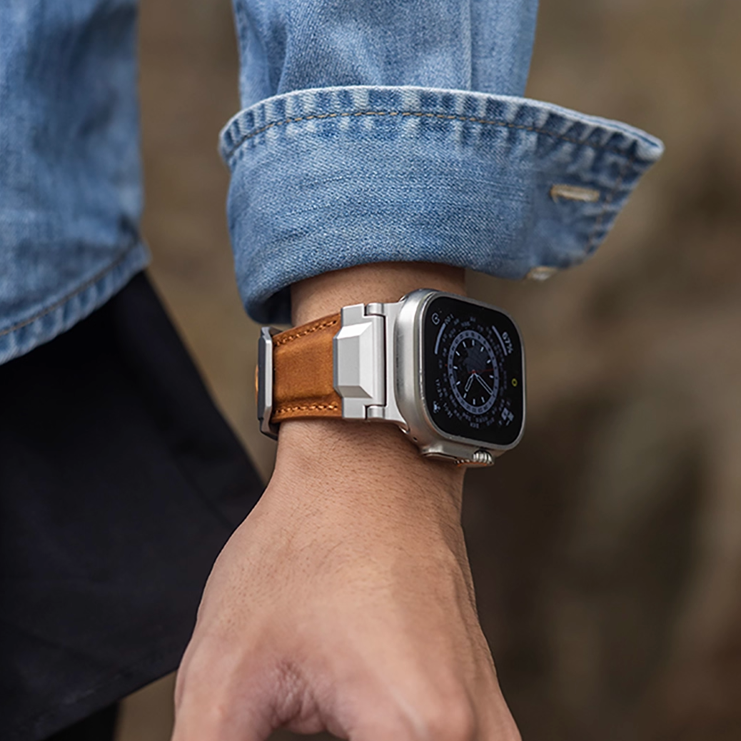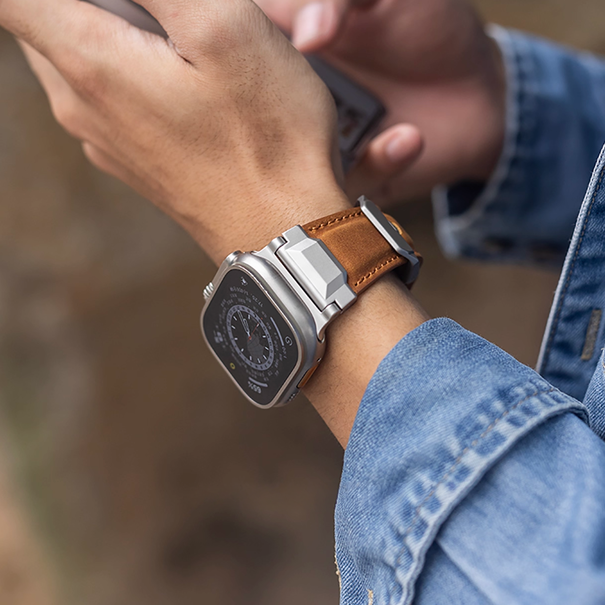 アウトドアギアのような堅牢さを備えながら、都会的なスタイルにも自然に馴染む、まさに大人のためのApple Watchバンド。