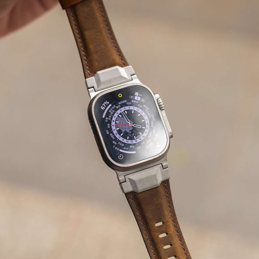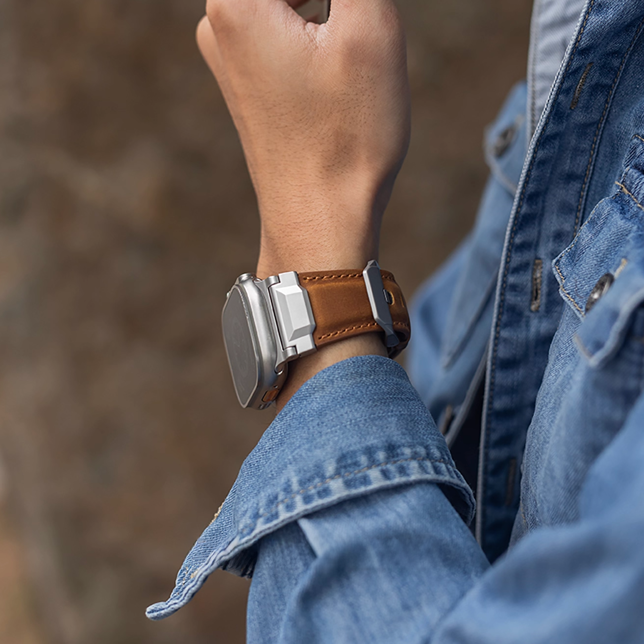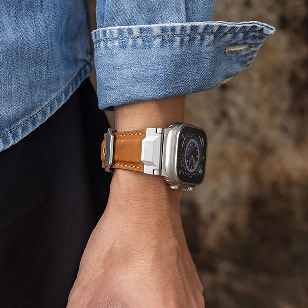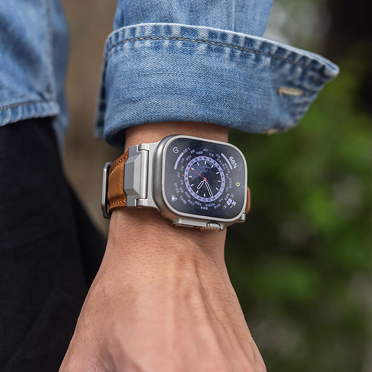 アウトドアギアのような堅牢さを備えながら、都会的なスタイルにも自然に馴染む、まさに大人のためのApple Watchバンド。