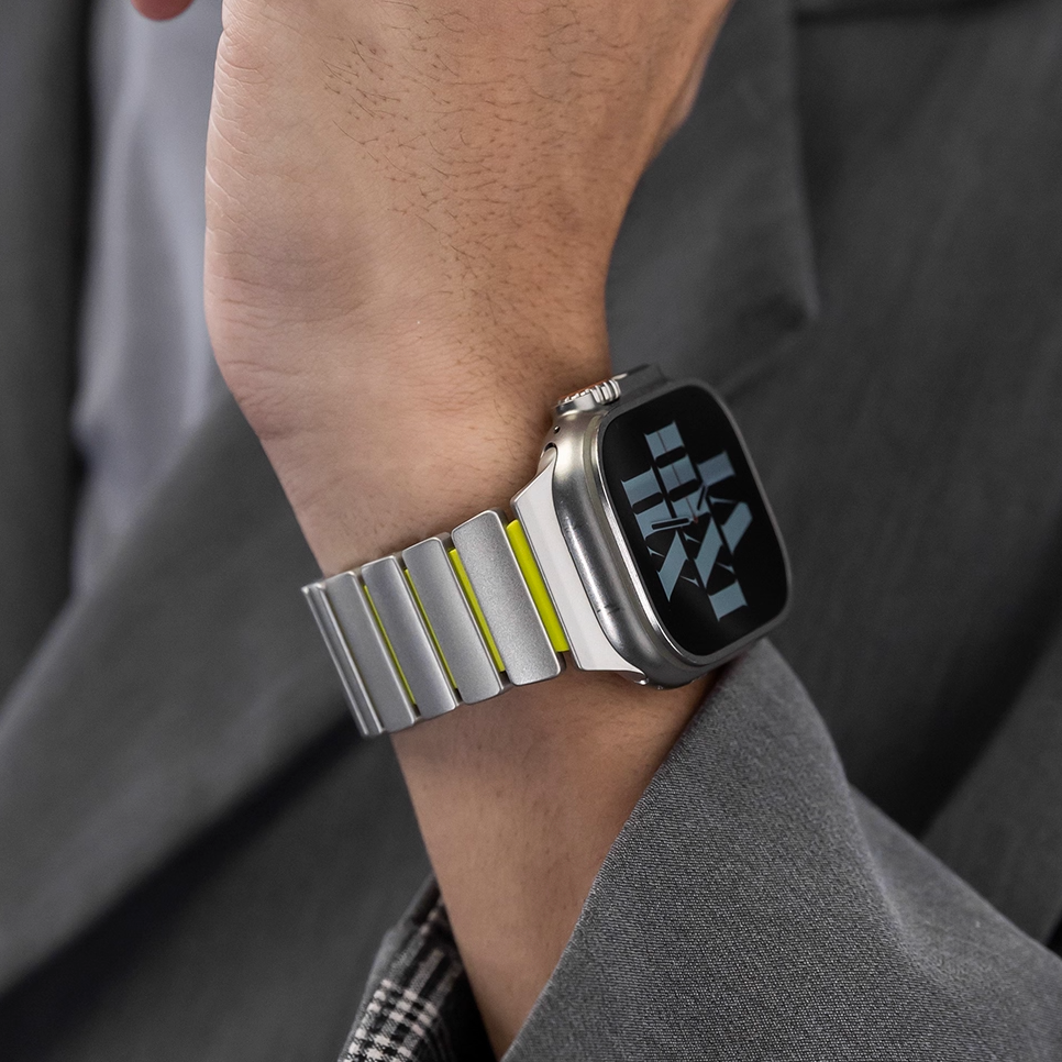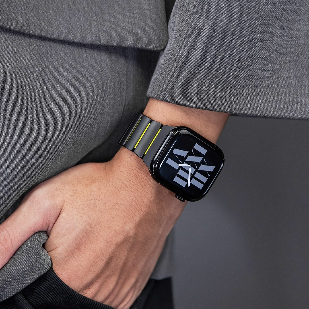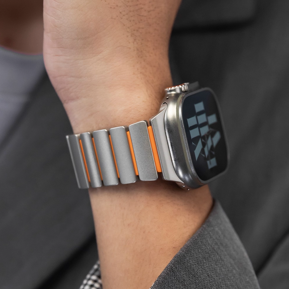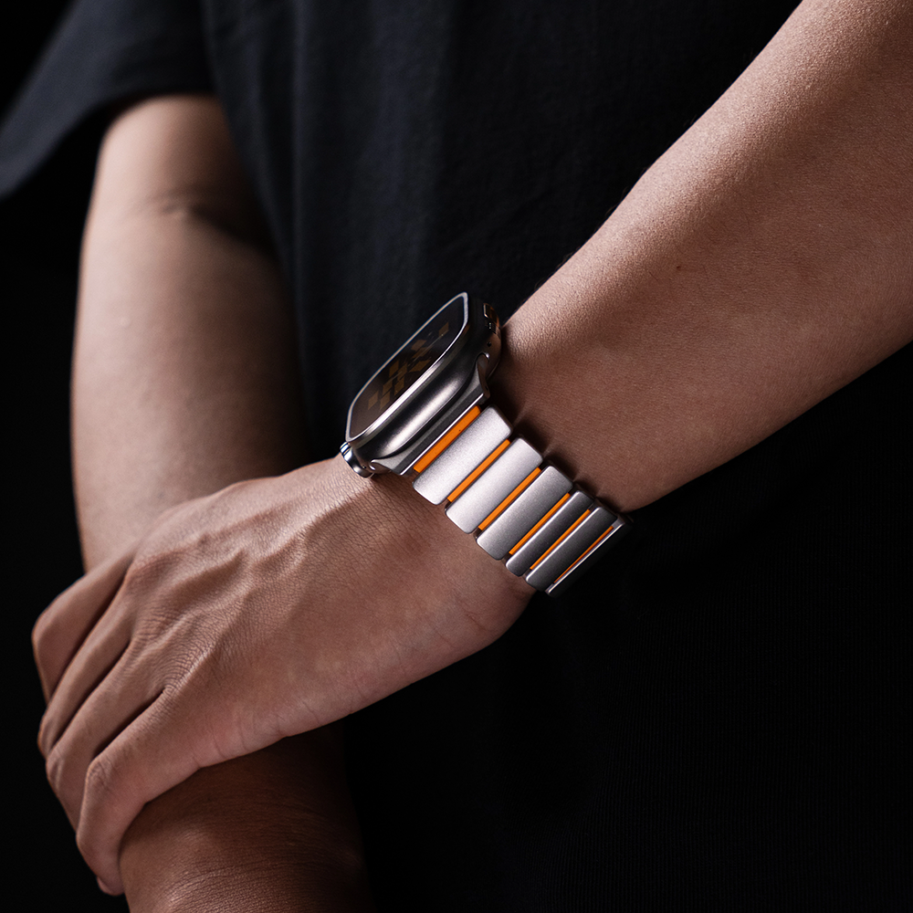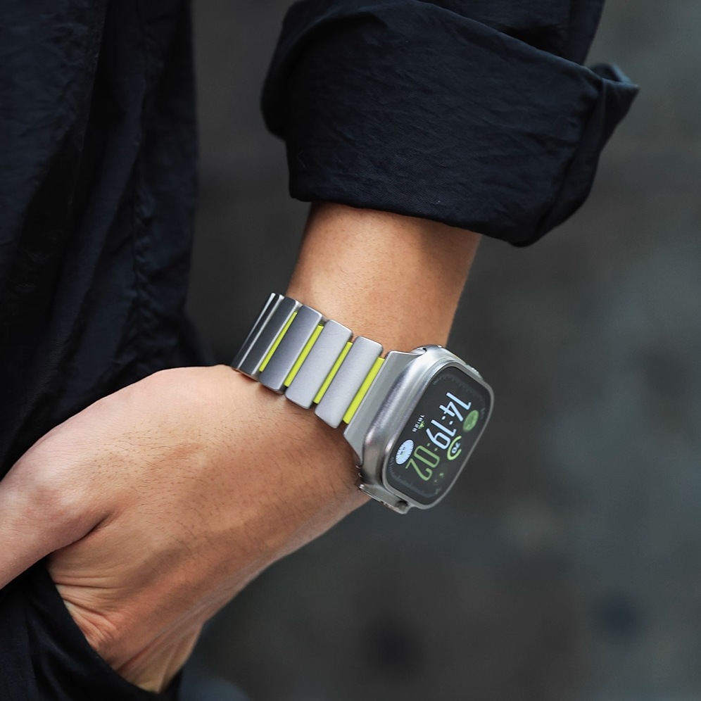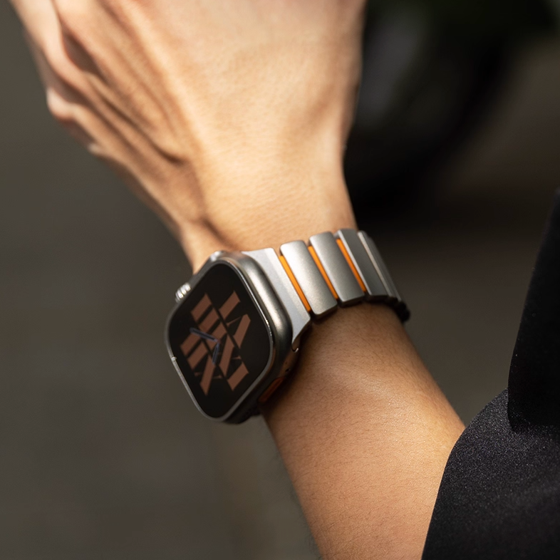 チタンとラバーを柔軟性を融合させたバイカラーデザインのApple Watchバンド。