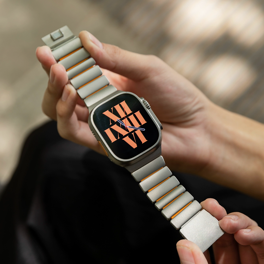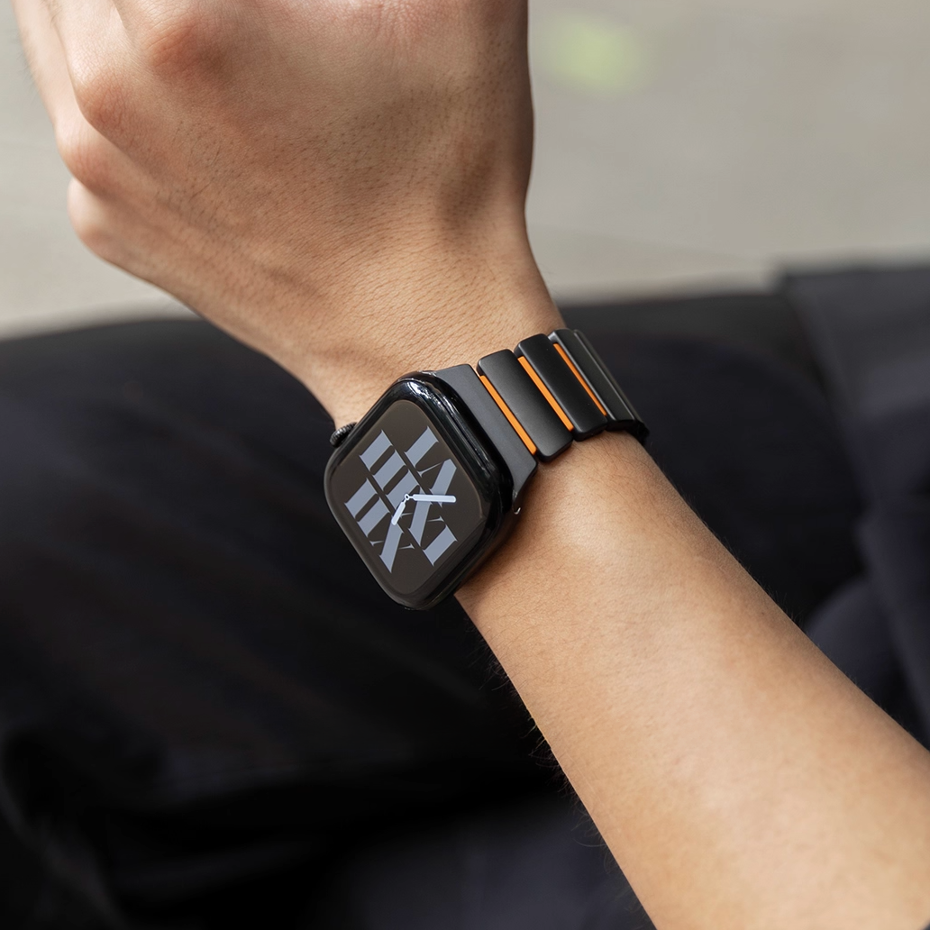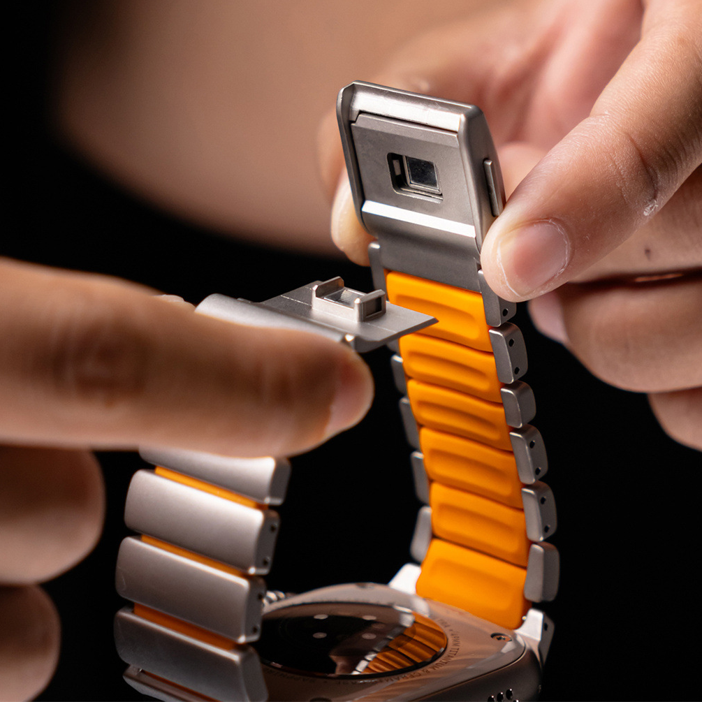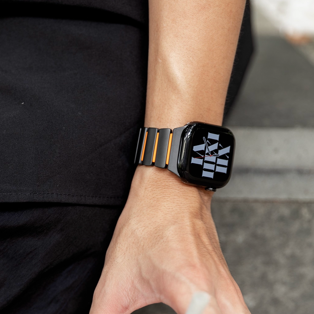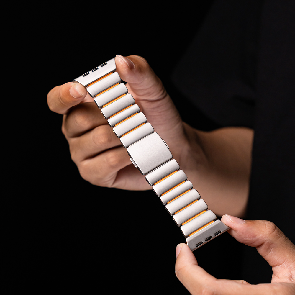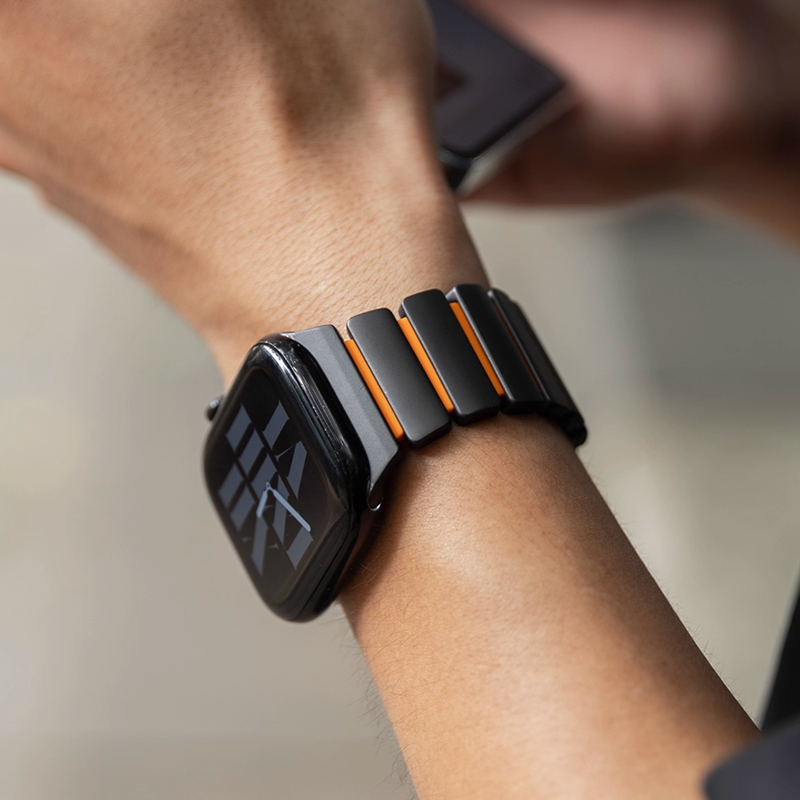 チタンとラバーを柔軟性を融合させたバイカラーデザインのApple Watchバンド。