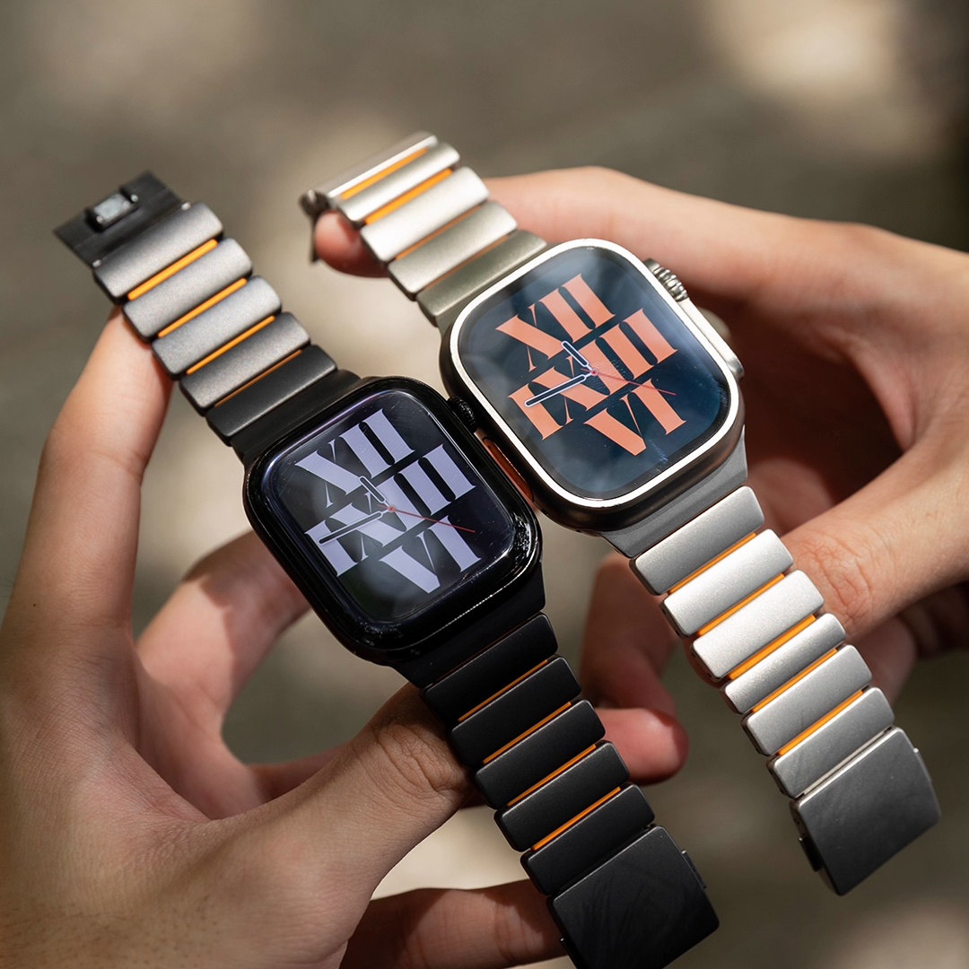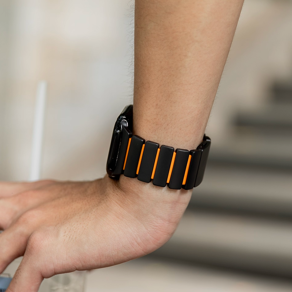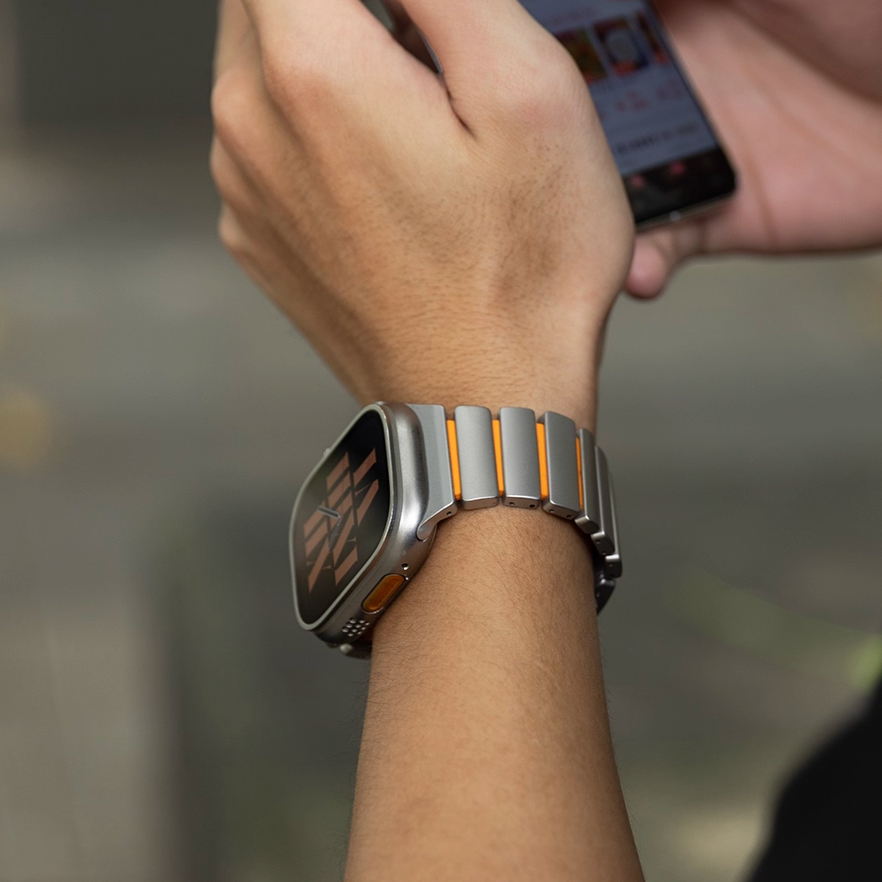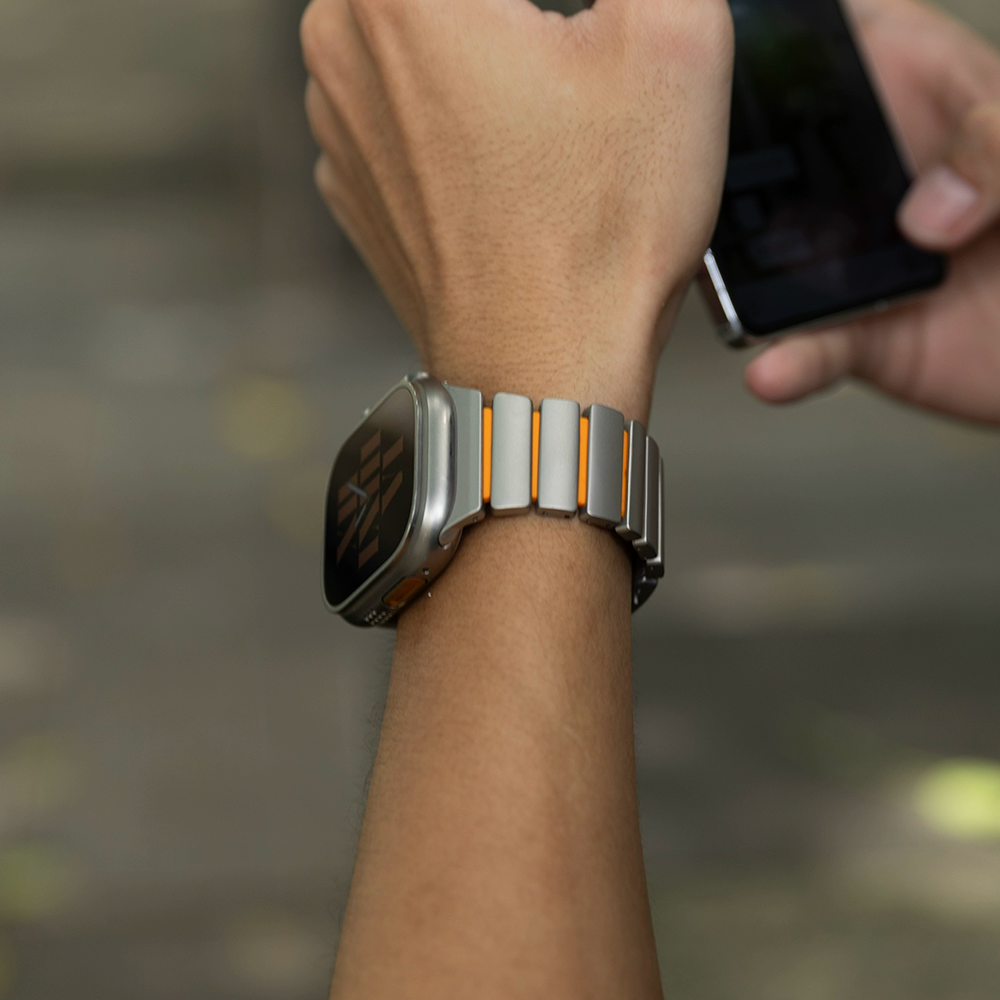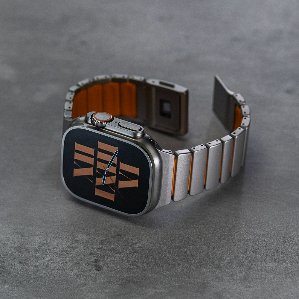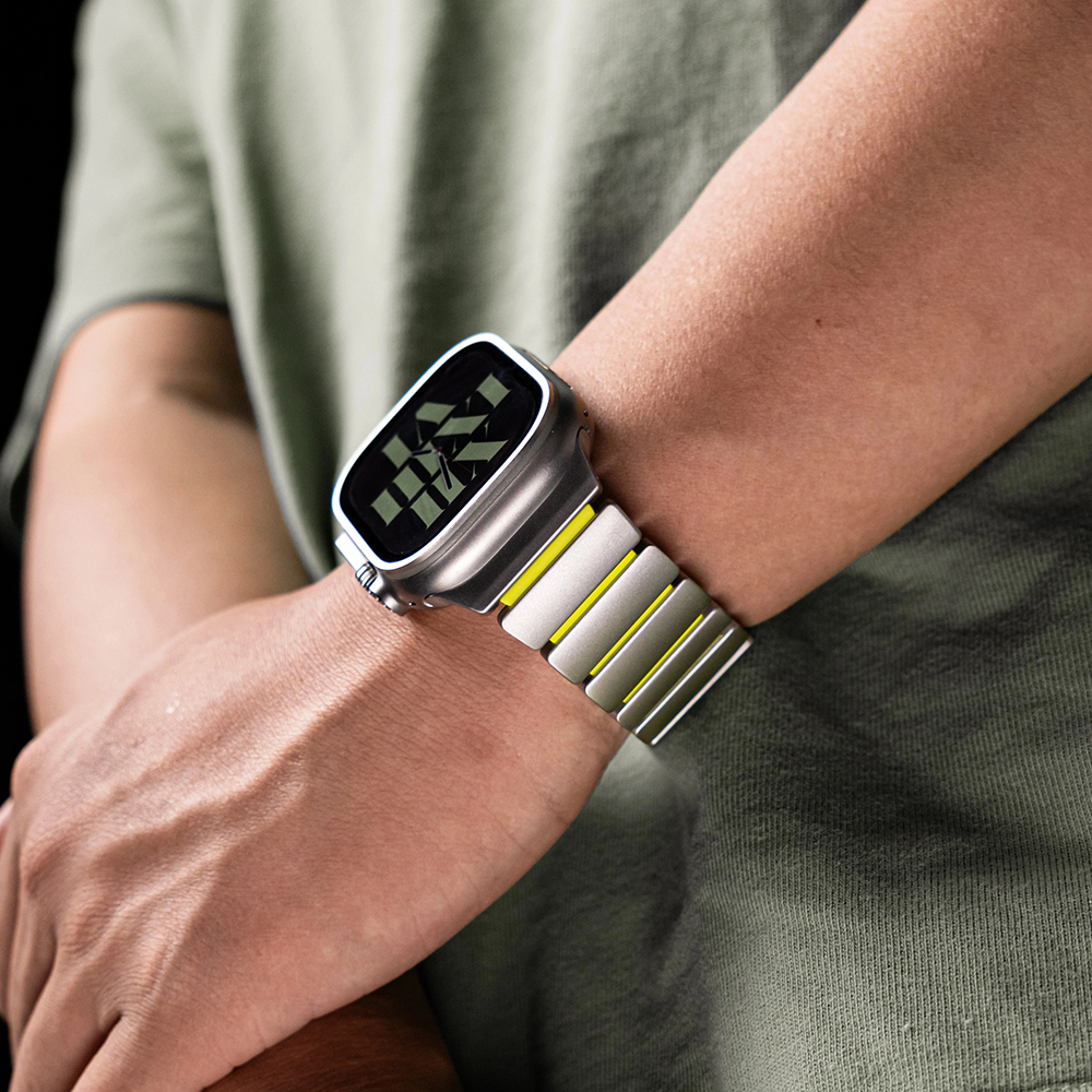 チタンとラバーを柔軟性を融合させたバイカラーデザインのApple Watchバンド。