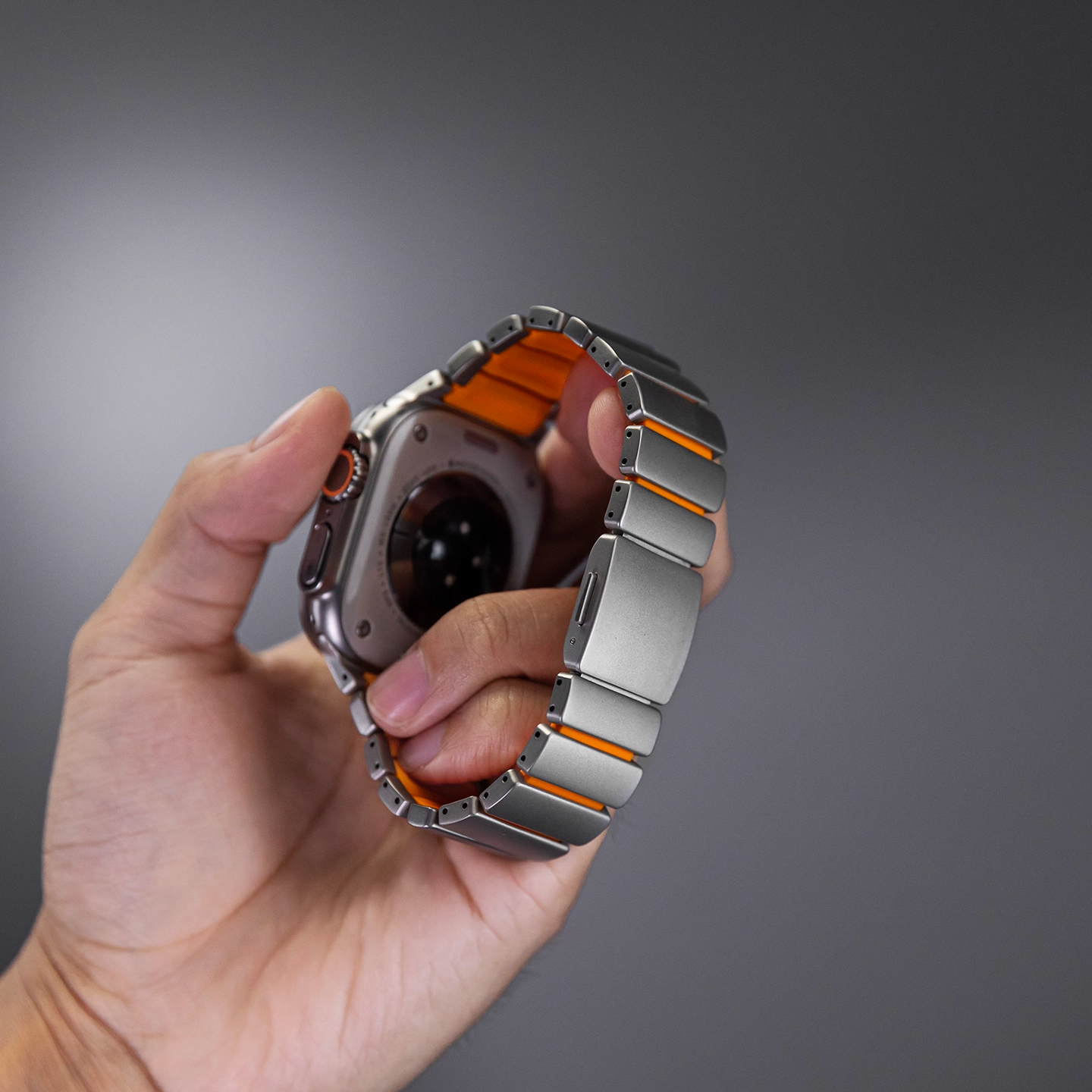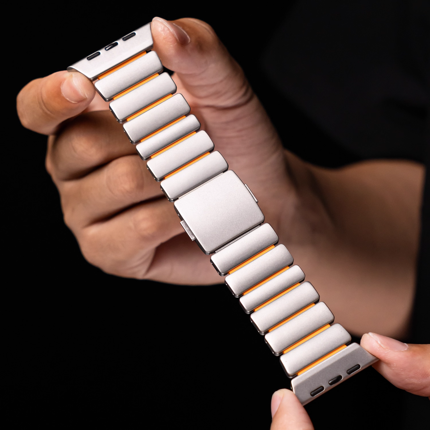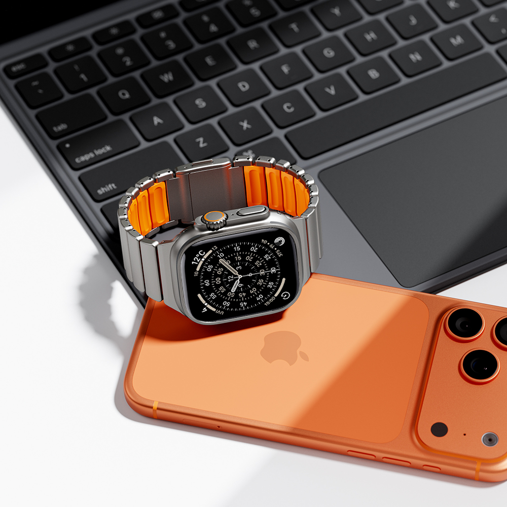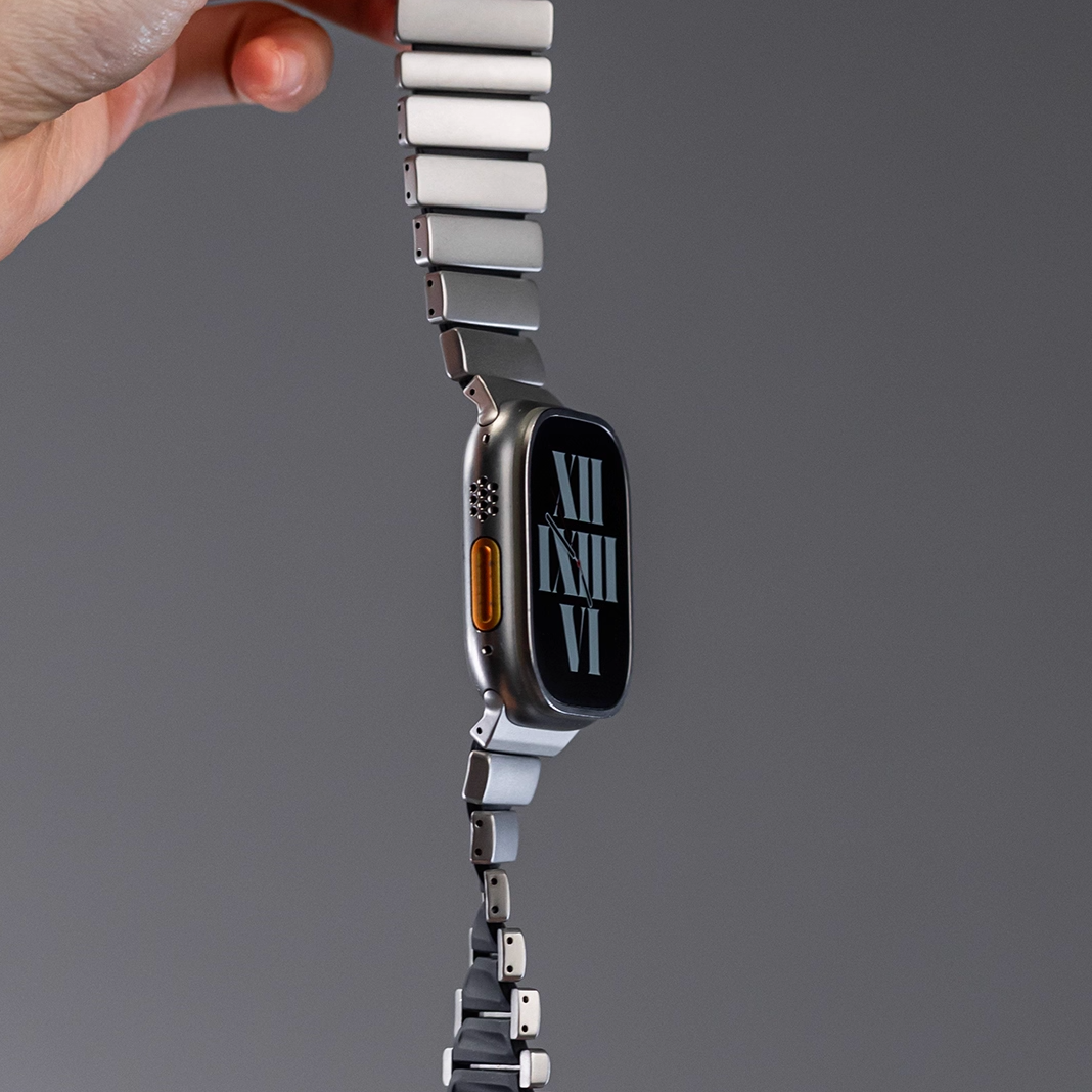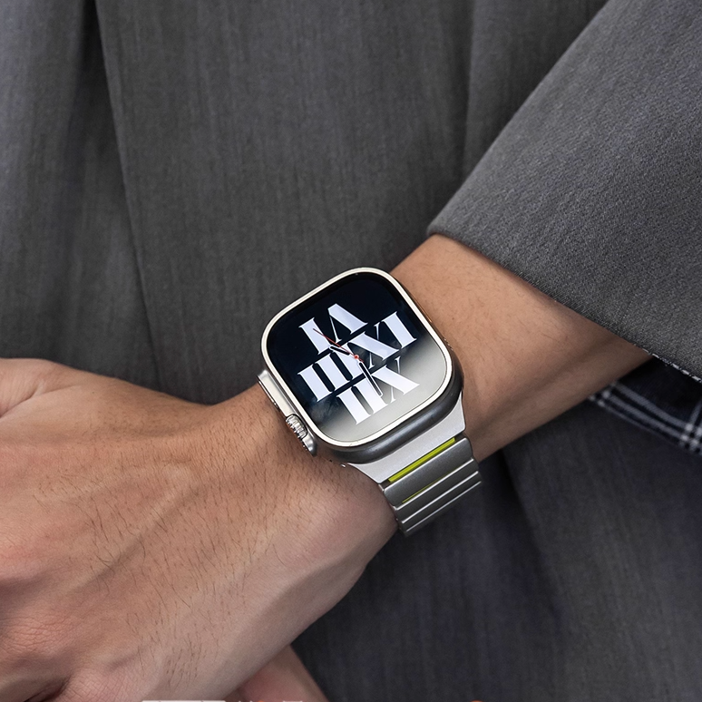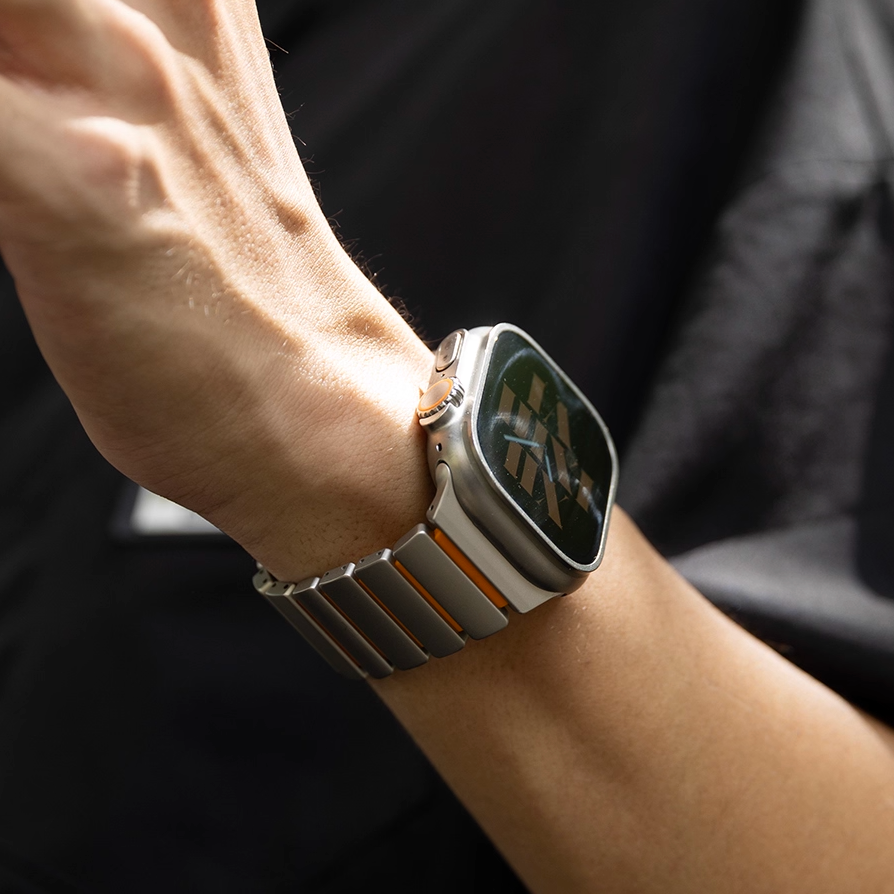 チタンとラバーを柔軟性を融合させたバイカラーデザインのApple Watchバンド。