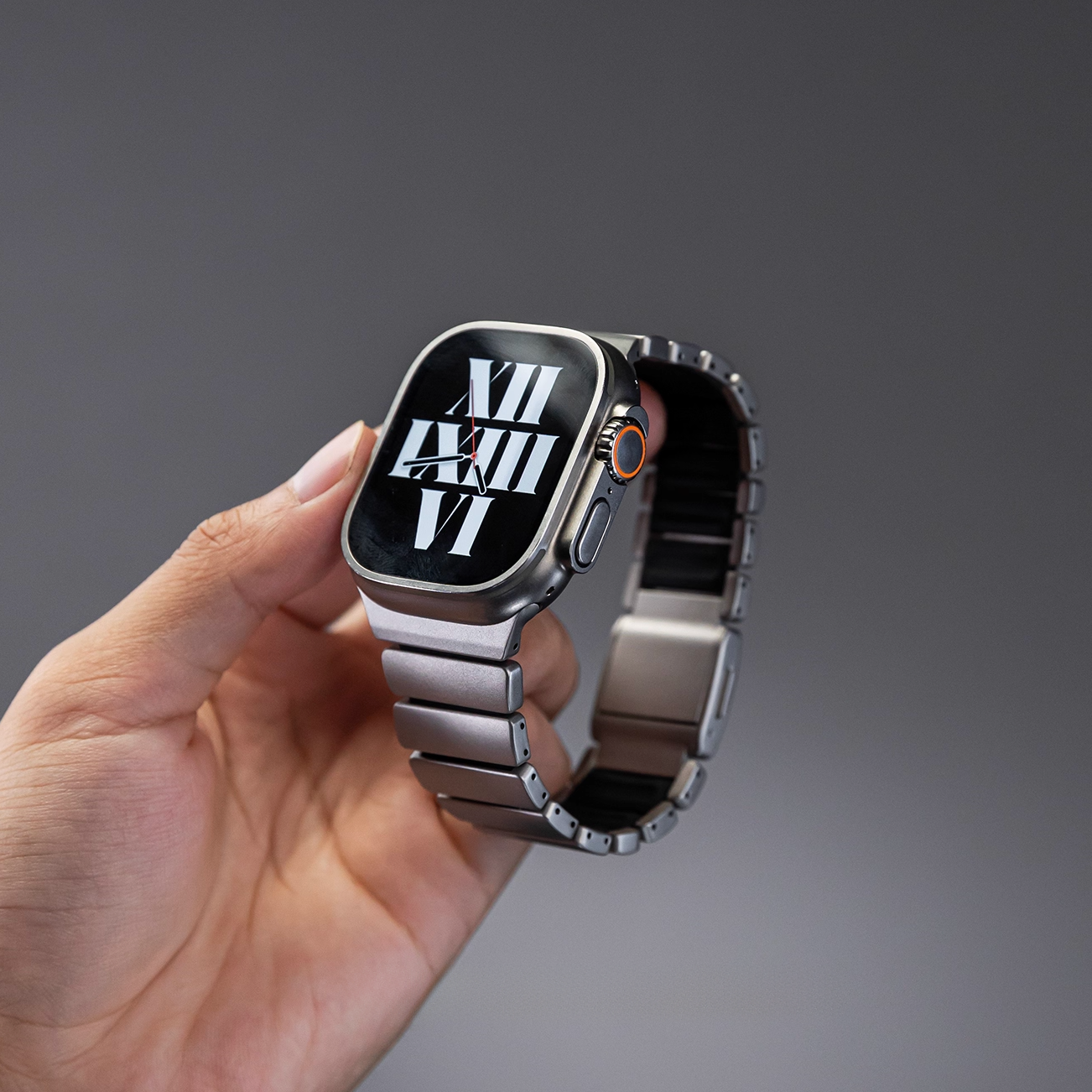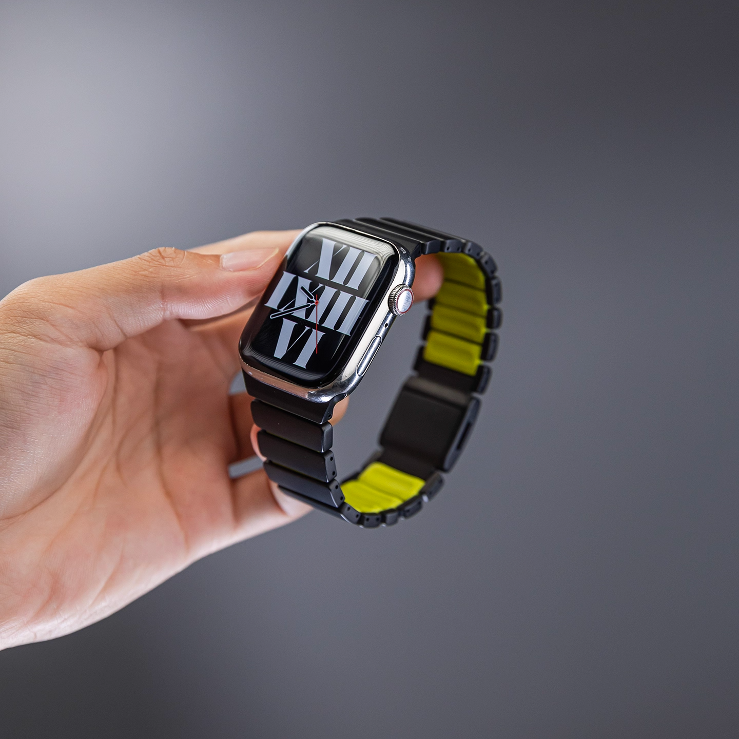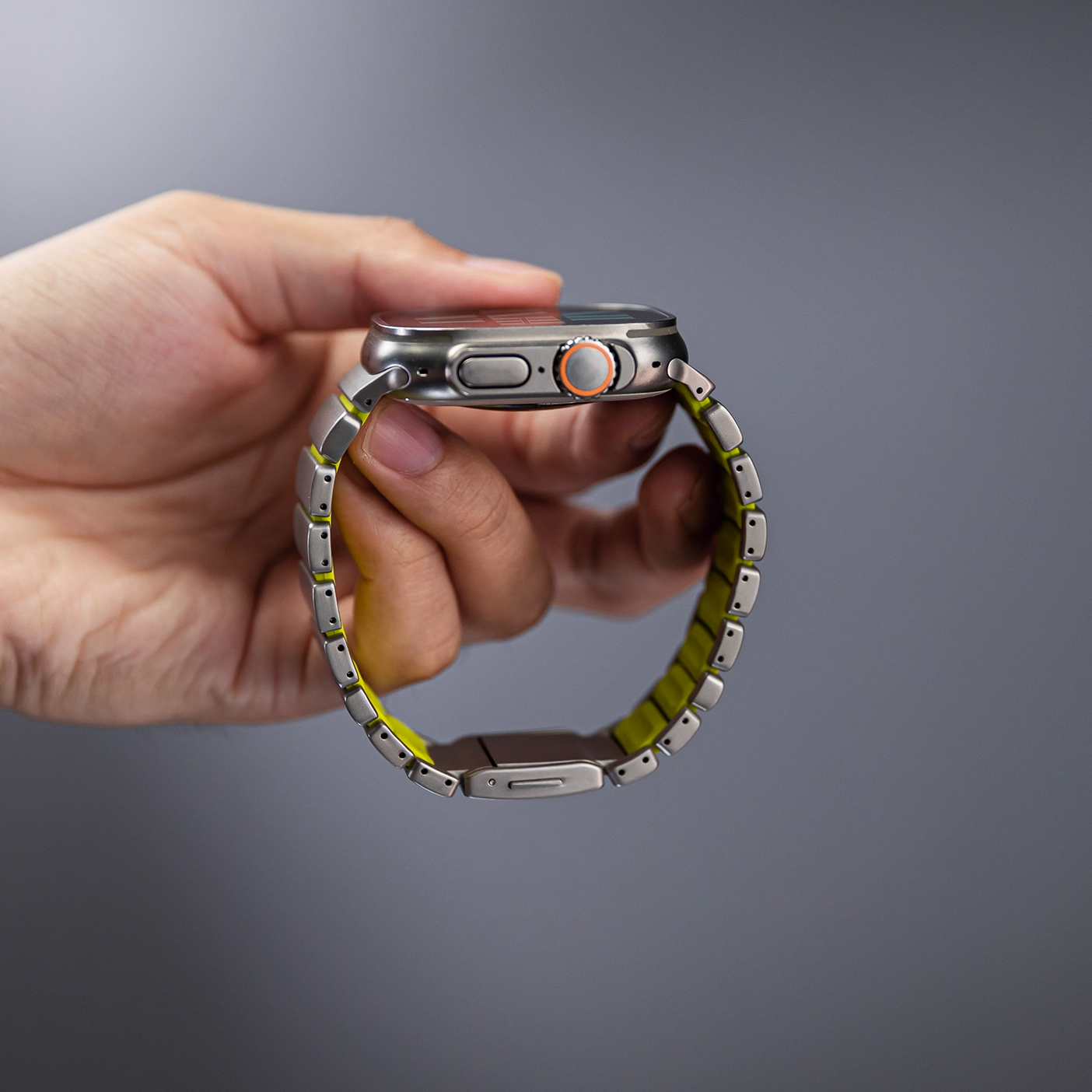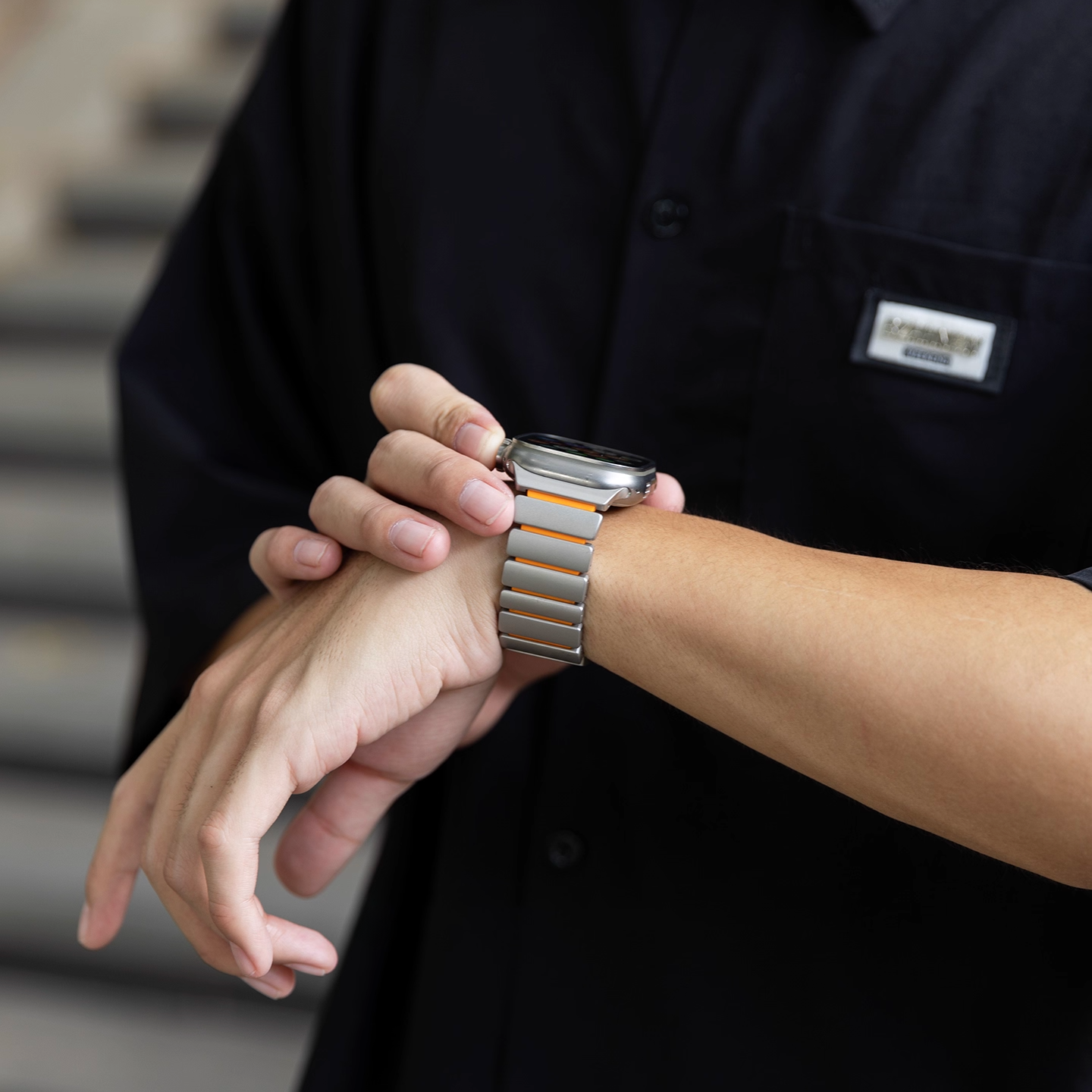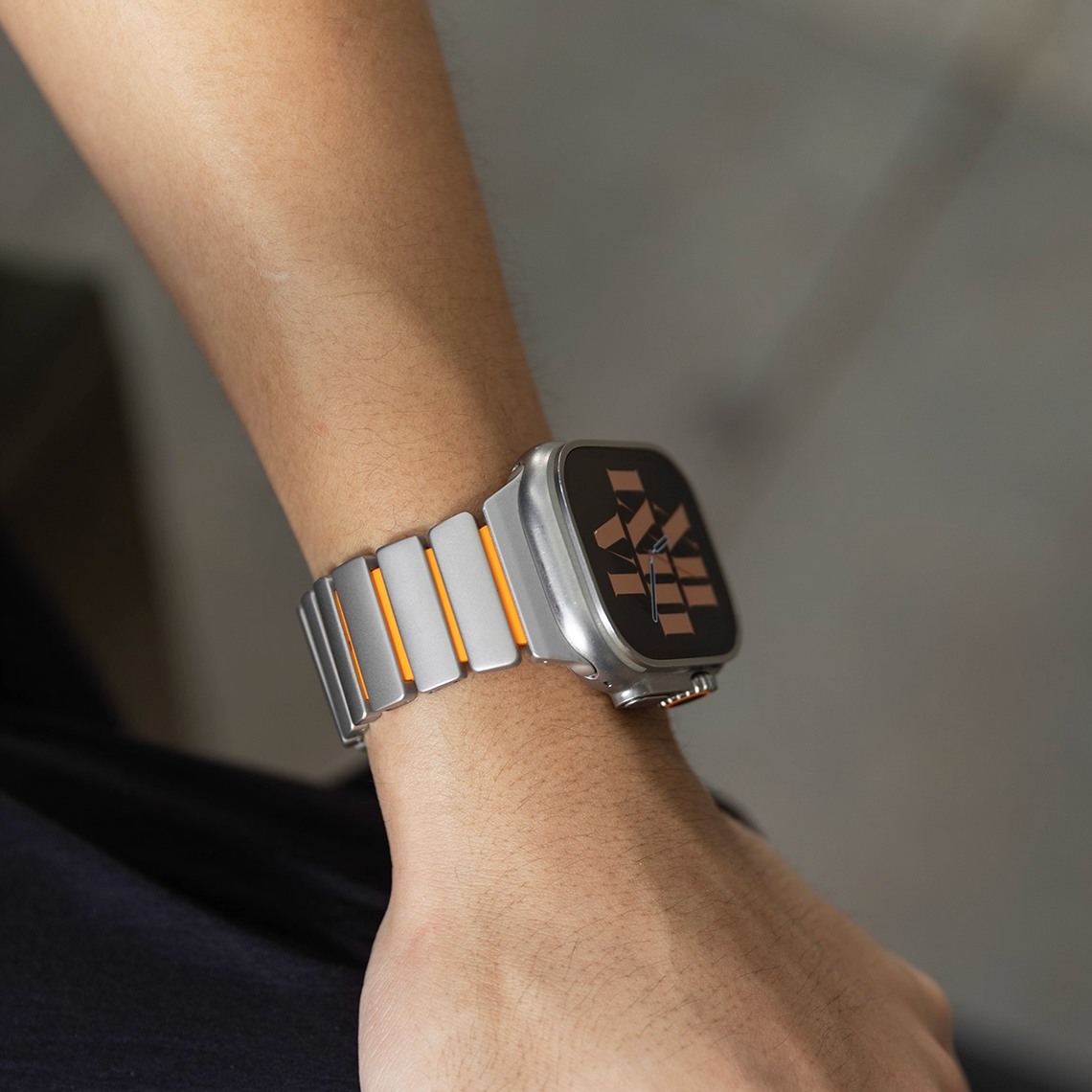 チタンとラバーを柔軟性を融合させたバイカラーデザインのApple Watchバンド。