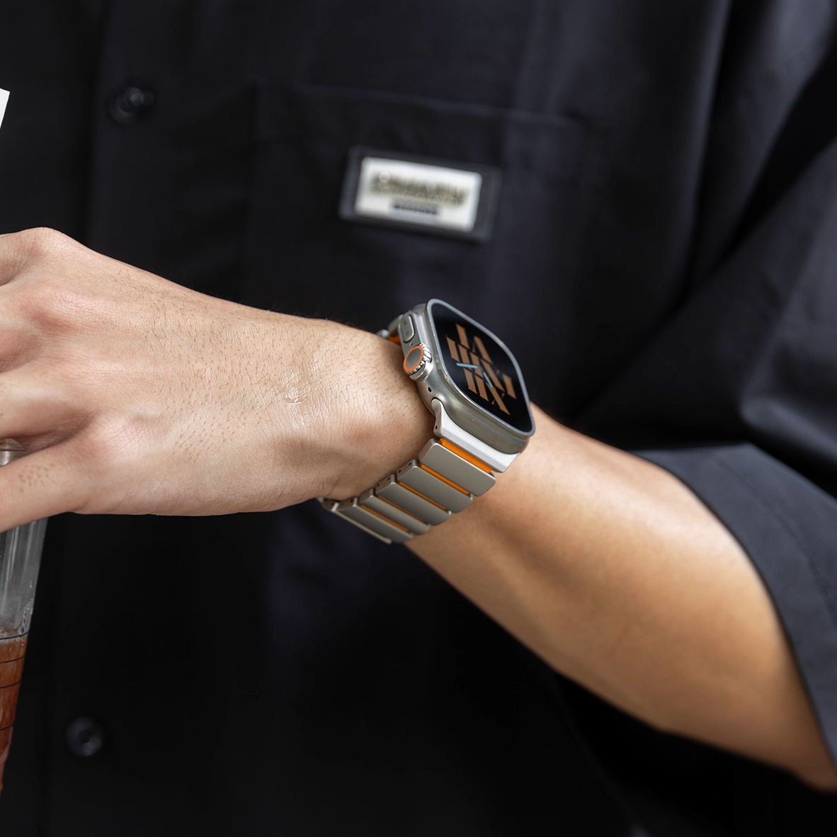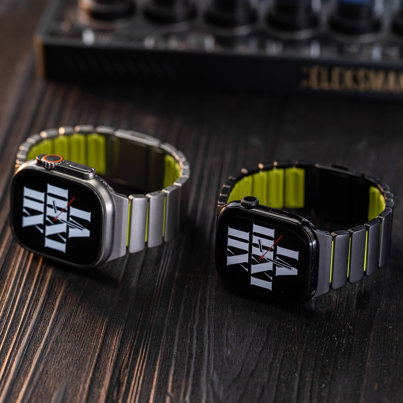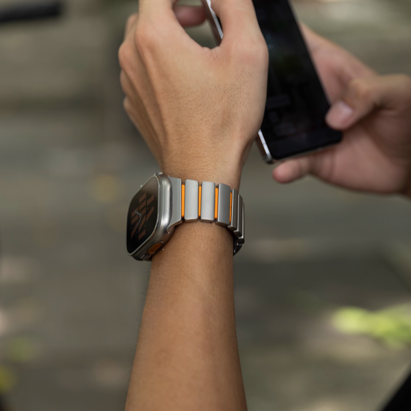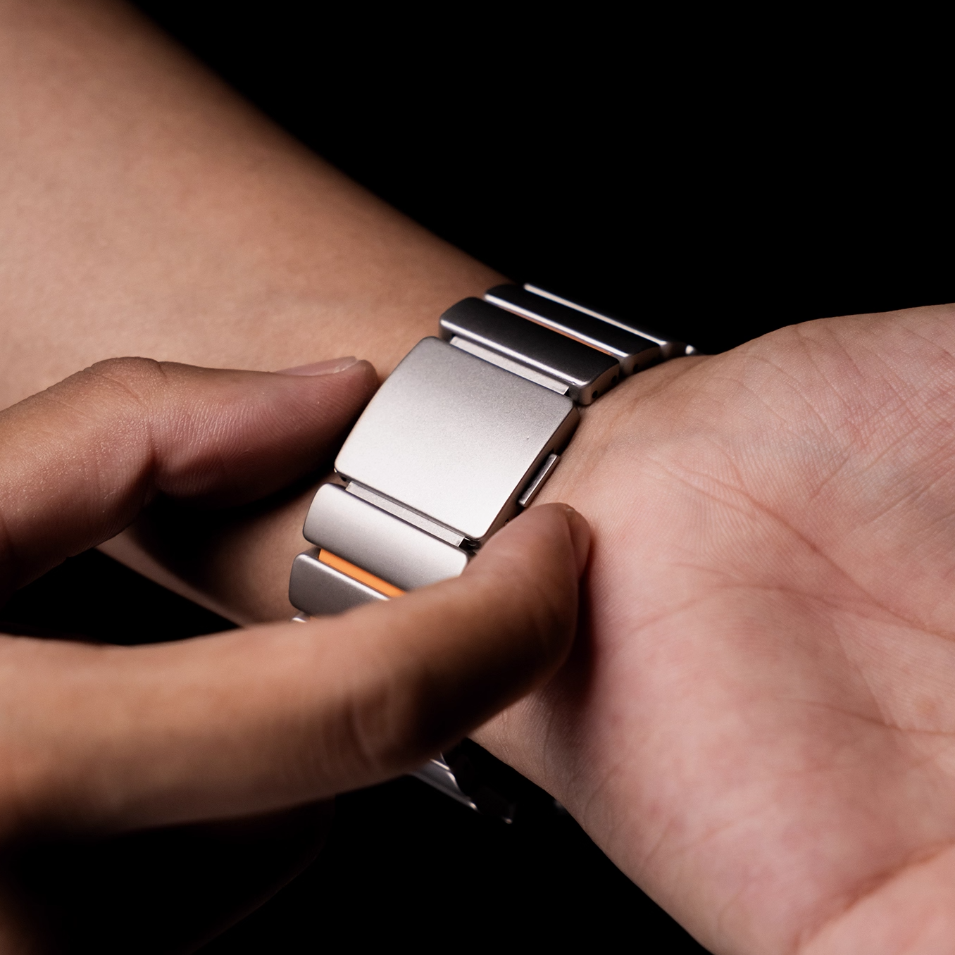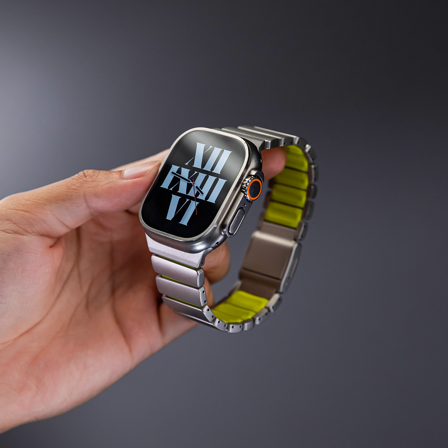 チタンとラバーを柔軟性を融合させたバイカラーデザインのApple Watchバンド。