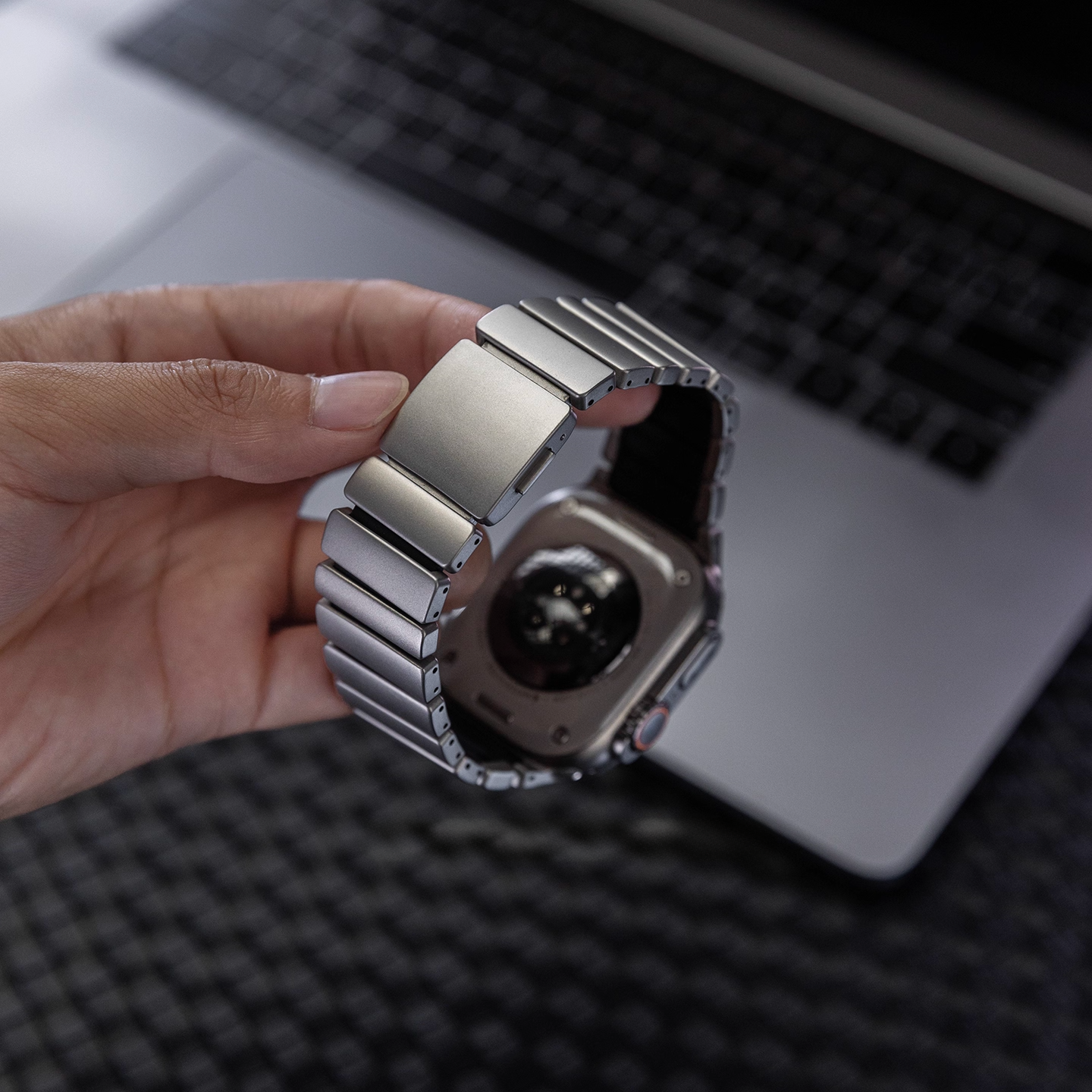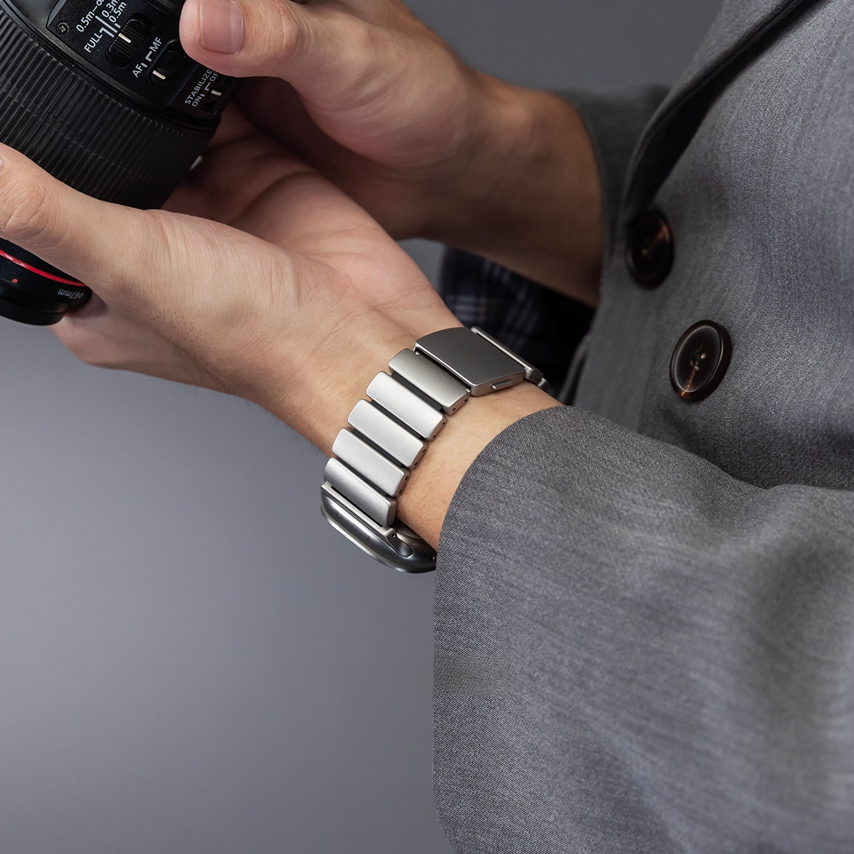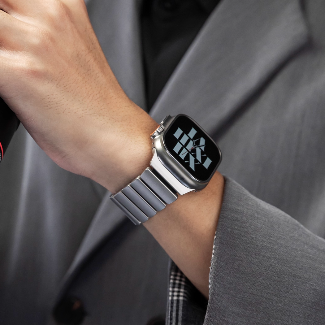 軽量ながら高級感のある仕上がりで、アクティブにもビジネスにも対応する万能なバンドです。