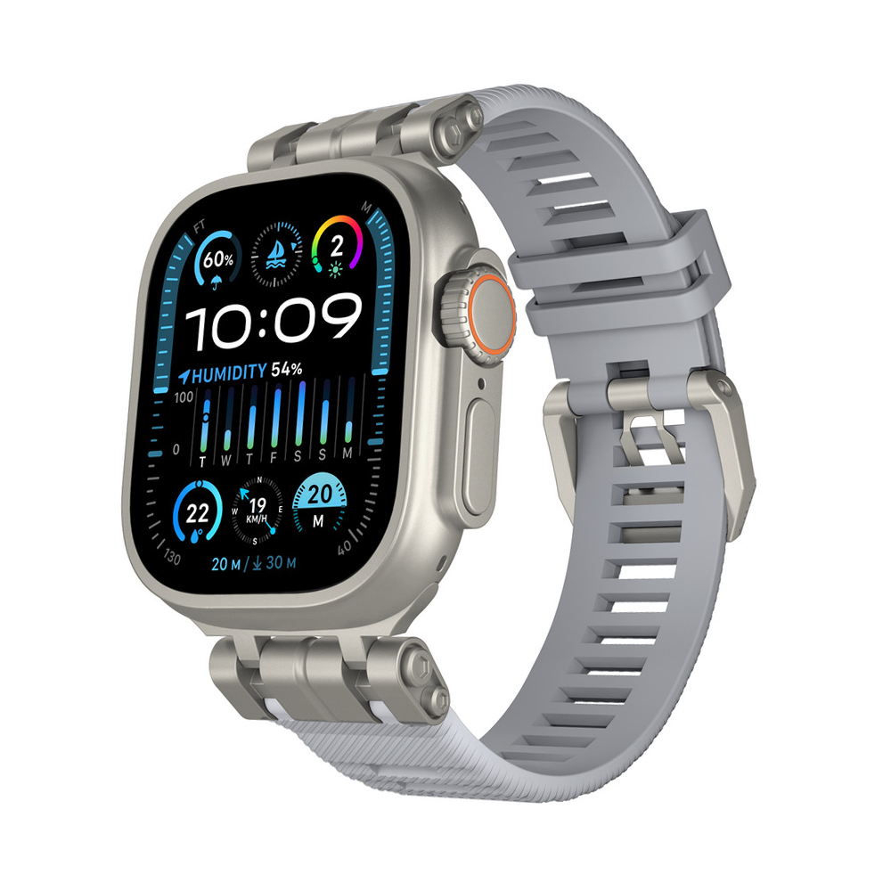 アクティブシーンでの使用に最適な、ステンレス製コネクトとTPU素材を組み合わせた高耐久Apple Watchバンド。