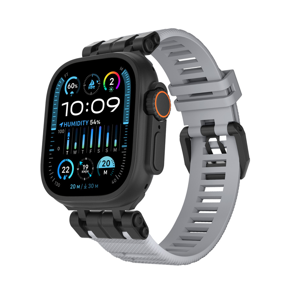 アクティブシーンでの使用に最適な、ステンレス製コネクトとTPU素材を組み合わせた高耐久Apple Watchバンド。